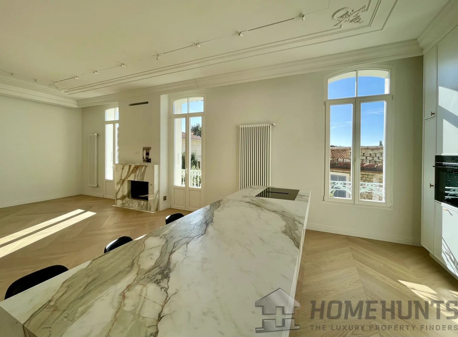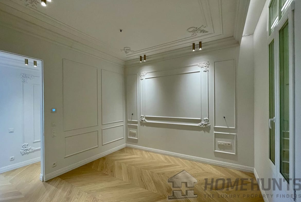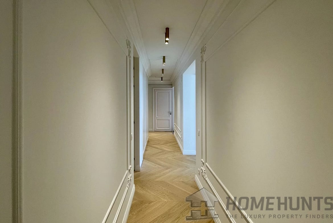 Spacious 50m2 living room with fireplace and open-plan kitchen opening onto a south-facing balcony with sea views. There are 3 superb bedrooms, each with marble an ensuite bathroom with heated floors, fitted wardrobes and dressing rooms. There is also a study and utility room.