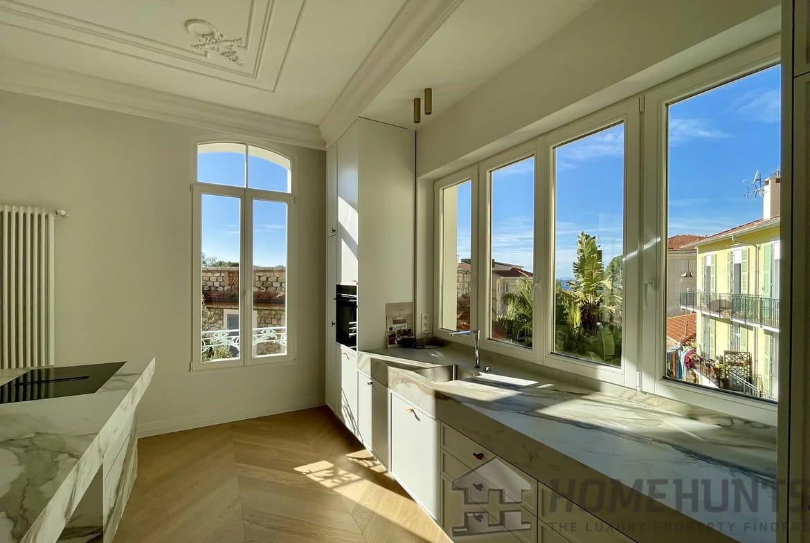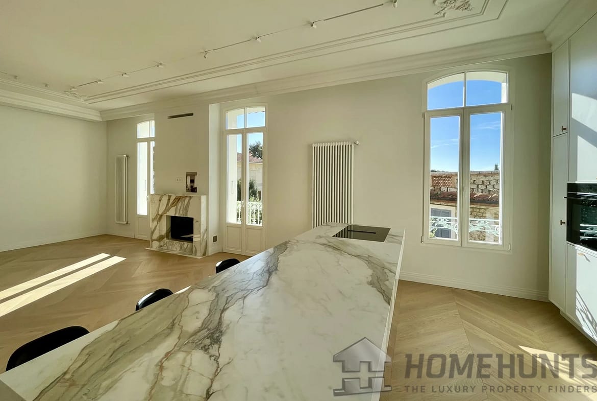 Luxuriously refurbished Belle Epoque apartment on the top floor of a small 1900’s building just a few steps from the town centre and beaches with private garden.
