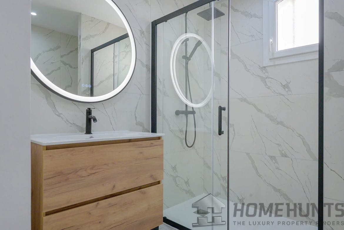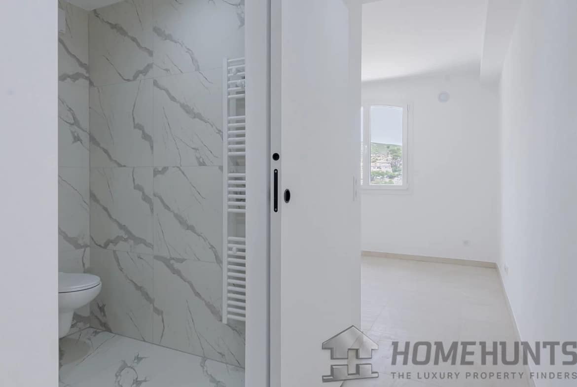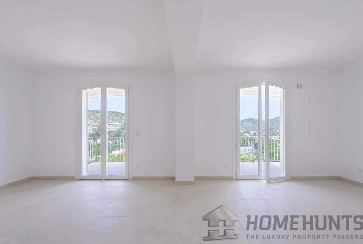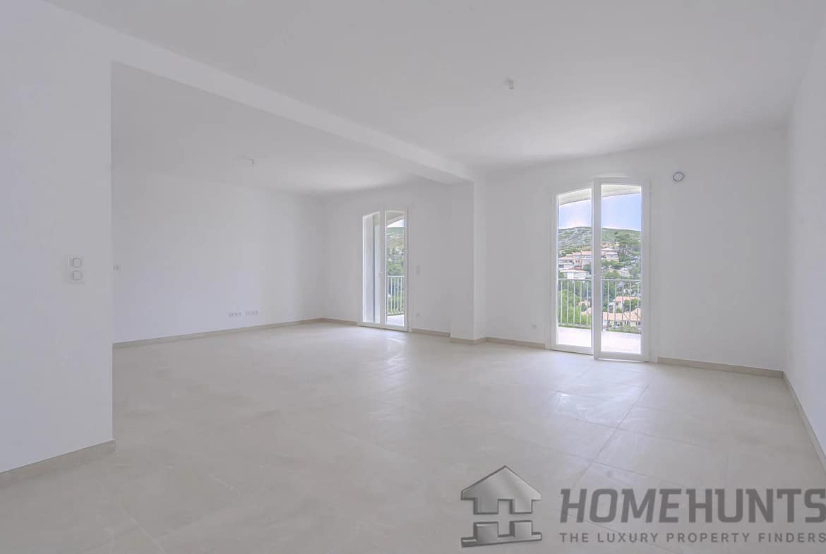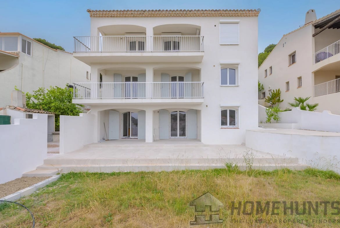 Ground floor: An entrance hall leads to a 55m2 living area with open-plan kitchen, which opens onto a 20m2 sheltered terrace with exceptional views of the hills and sea, separate toilet, utility room, and 2 bedrooms with a large shared shower room (master bedroom possible), and a large storage room.