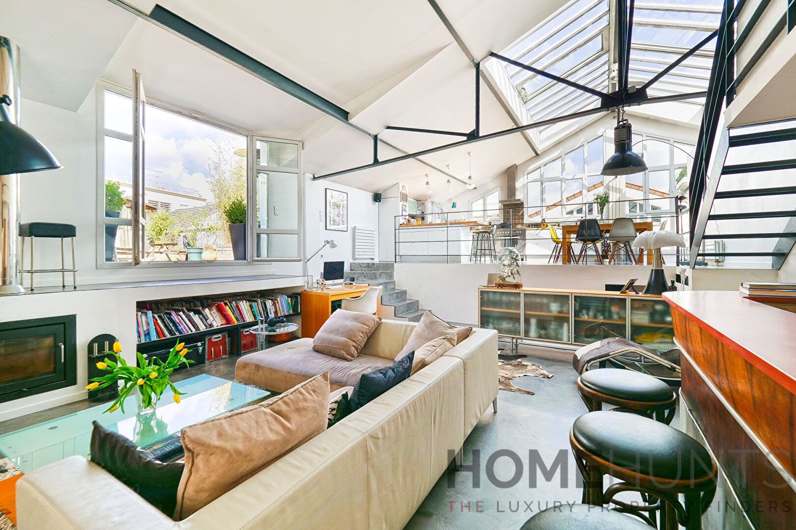 In the Marceau-Republique district, this former dance hall rehabilitated into a 183 m2 loft style apartment with a superb 72 m2 terrace has been completely redesigned by an architect and is accessible from the street via a separate entrance, much like in a house.