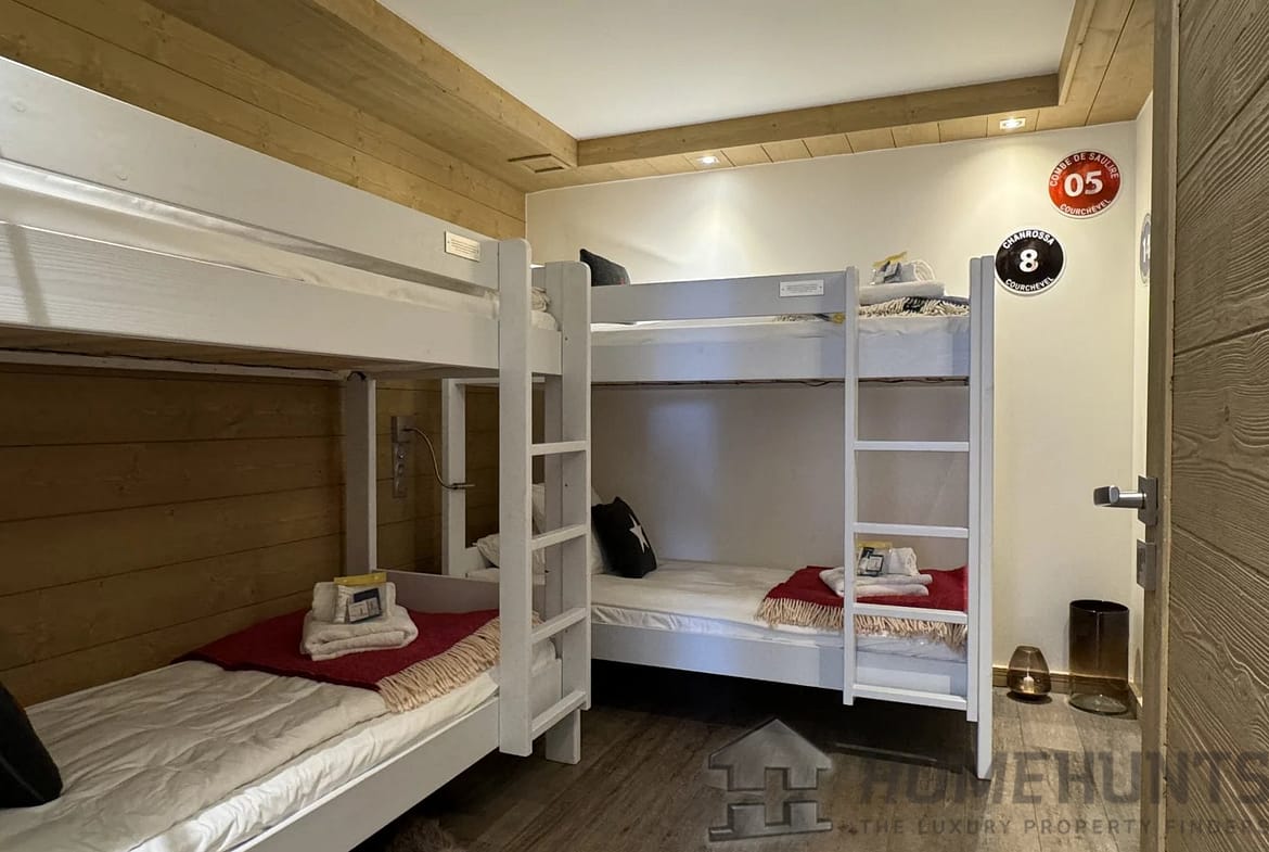 Superb Alpine home, comprises two bedrooms with double beds, a dormitory room with two bunk beds, two bathrooms and a shower room.