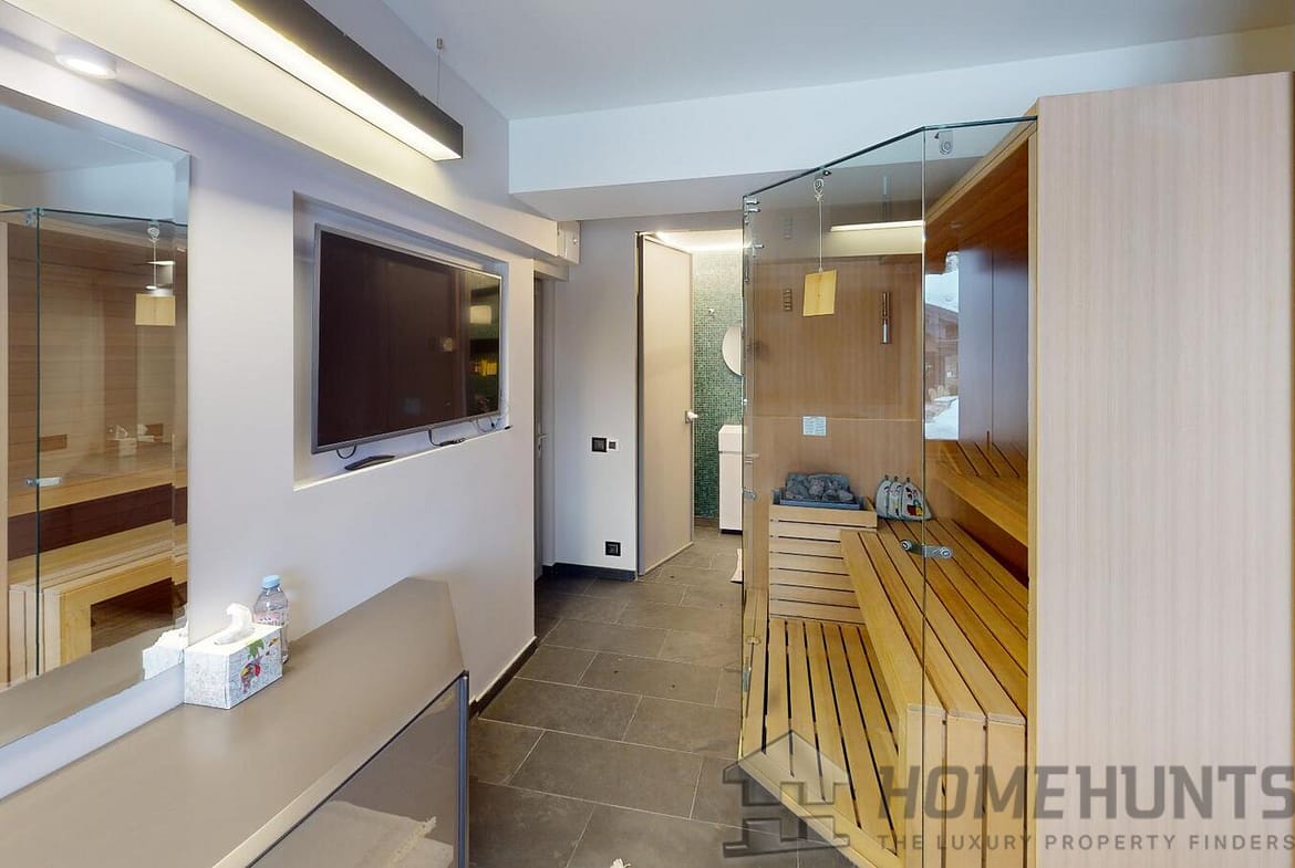 A true highlight of this alpine retreat is the exclusive 15.48 m2 private sauna and wellness space with its own shower room—offering a soothing escape after a day on the pistes.