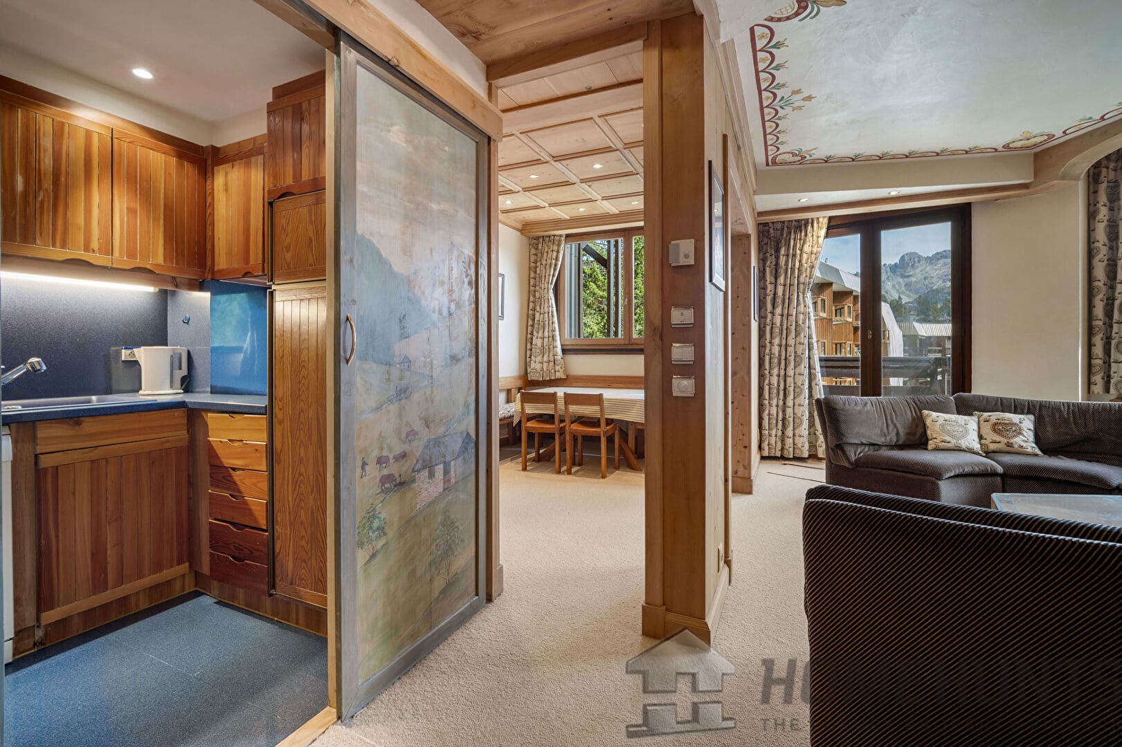 This duplex apartment occupies the top two floors of a sought-after residence in Jardin Alpin, offering a rare living environment that combines authentic Alpine charm with potential for personalisation.