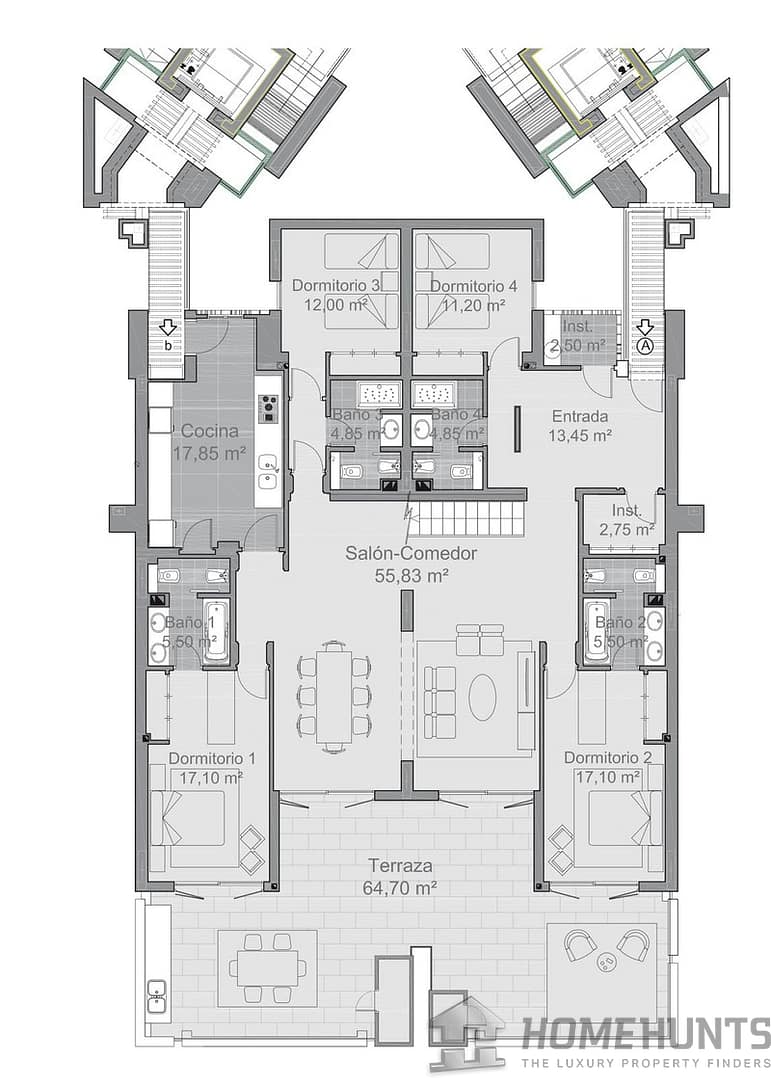 The development features a collection of modern, elegantly designed apartments and penthouses, characterized by their spacious layouts, high-quality finishes, and expansive terraces. Each unit is thoughtfully crafted to maximize natural light and to provide a seamless indoor-outdoor living experience.