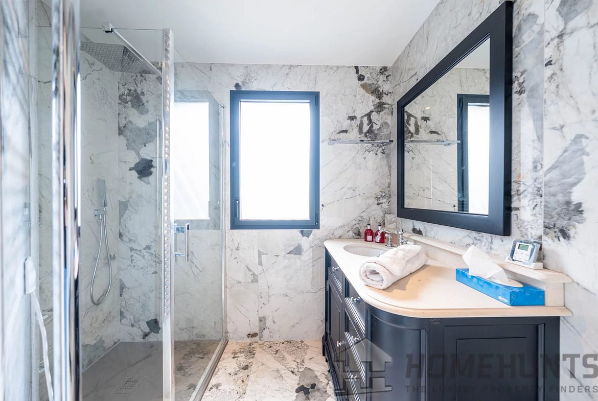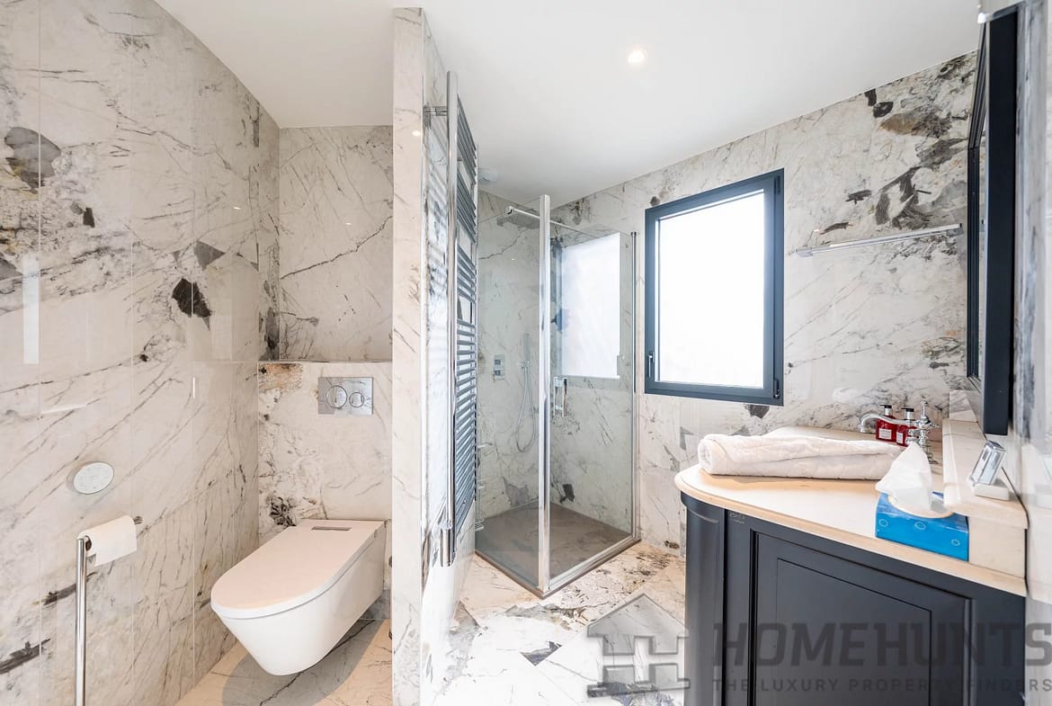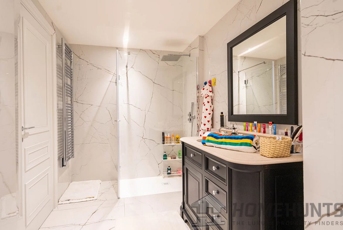 Upon entering, you are greeted by a gracious and light-filled living area, flowing seamlessly into a designer open kitchen with a stylish dining space—perfect for hosting in elegant Riviera fashion. The property boasts four private bedrooms, each with its own en-suite bathroom, in addition to two dressing rooms and a guest WC, offering a layout that balances luxury and practicality for both family life and entertaining.