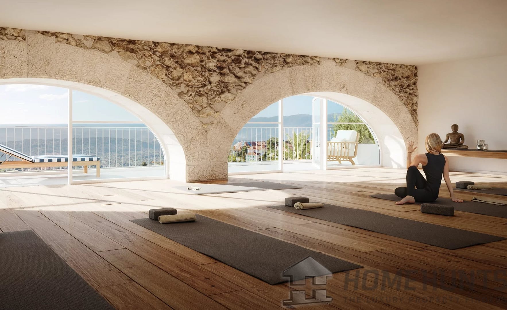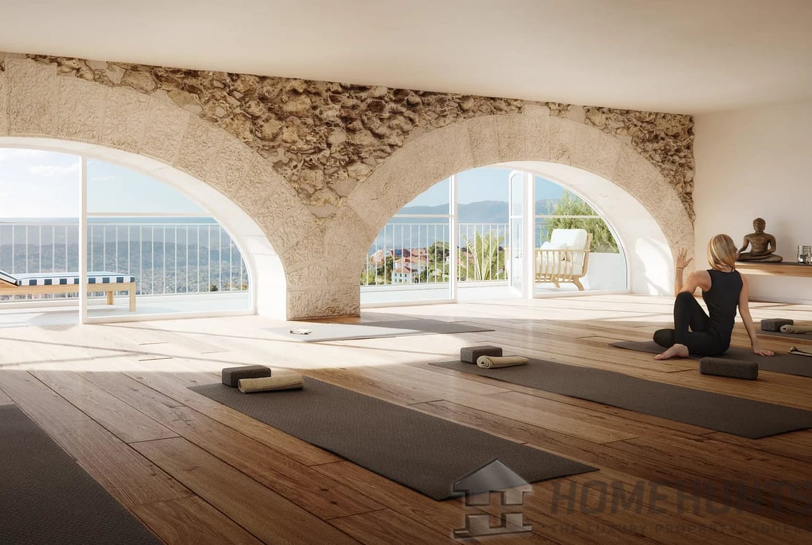 Nestled within a fully restored historic building, the Helios residence embodies charm and sophistication on the hills of Grasse. It offers sweeping views over the town, the surrounding hills, and all the way to the sea.