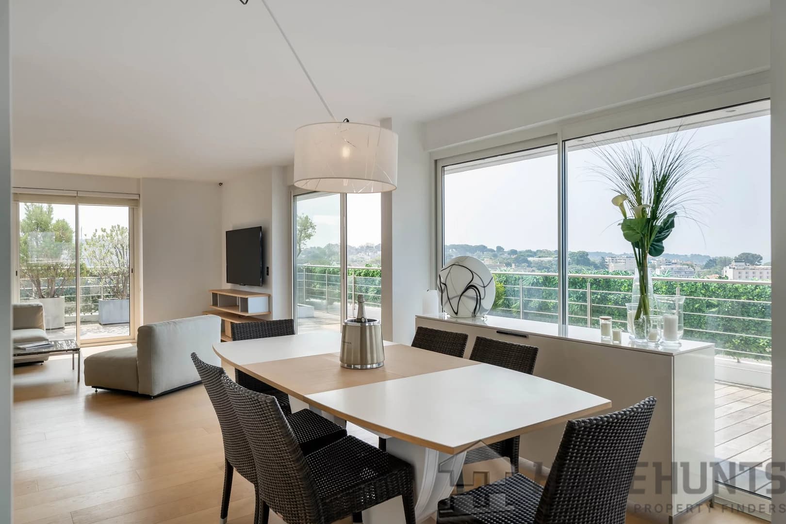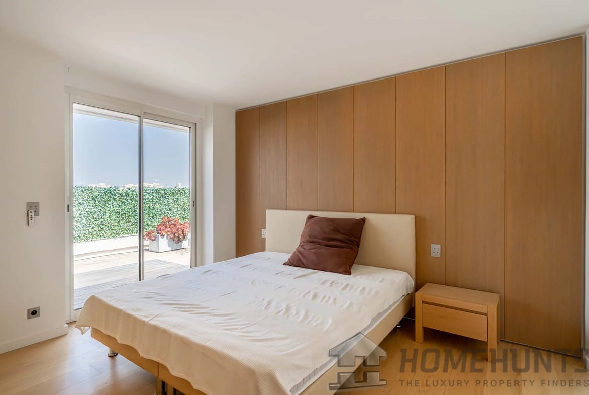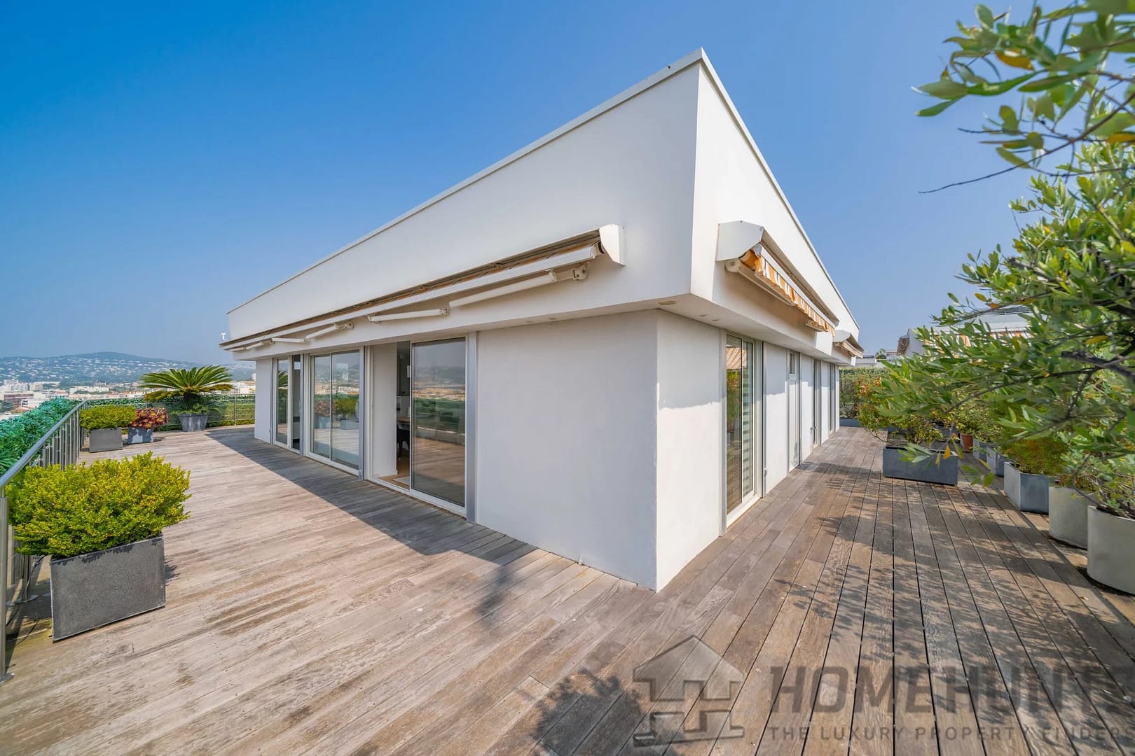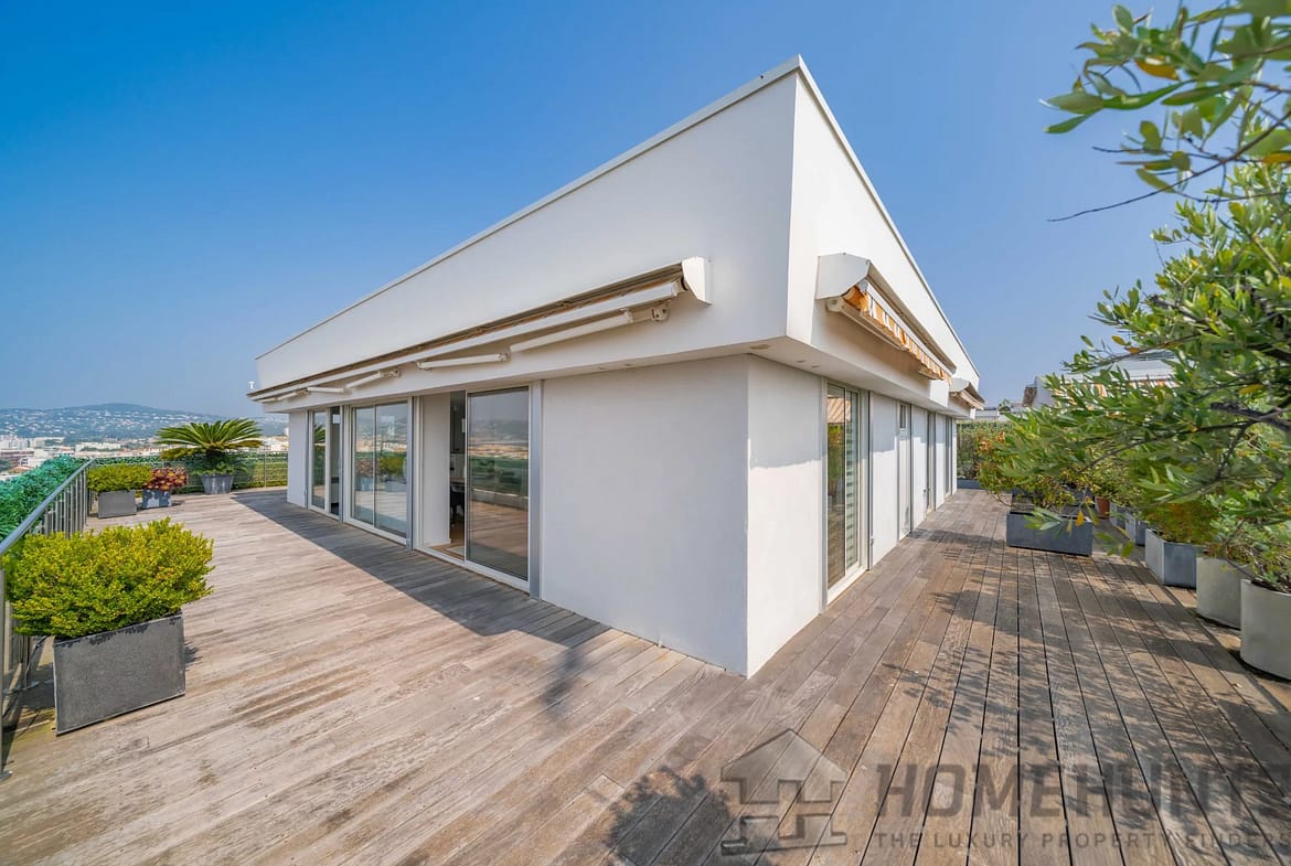 Located at the entrance to Cap d’Antibes, 500 from the beaches and right in the town center, this 120 m2 roof terrace offers a panoramic 180 degree sea view from Cap d’Antibes to Esterel.