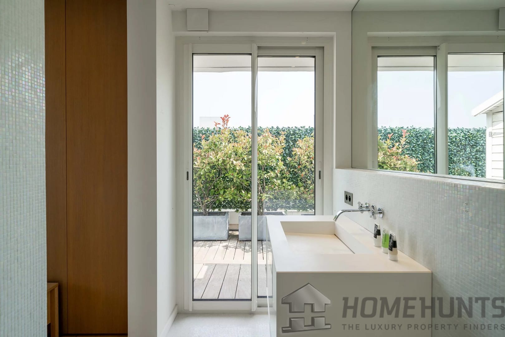 You’ll enjoy a 250 m2 south-facing single-storey terrace that runs all the way around the apartment.