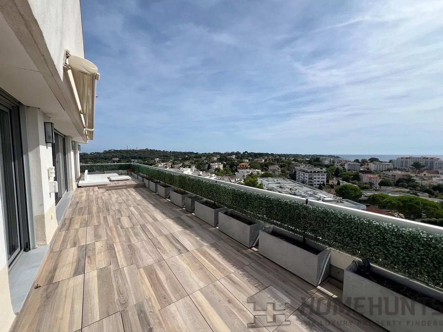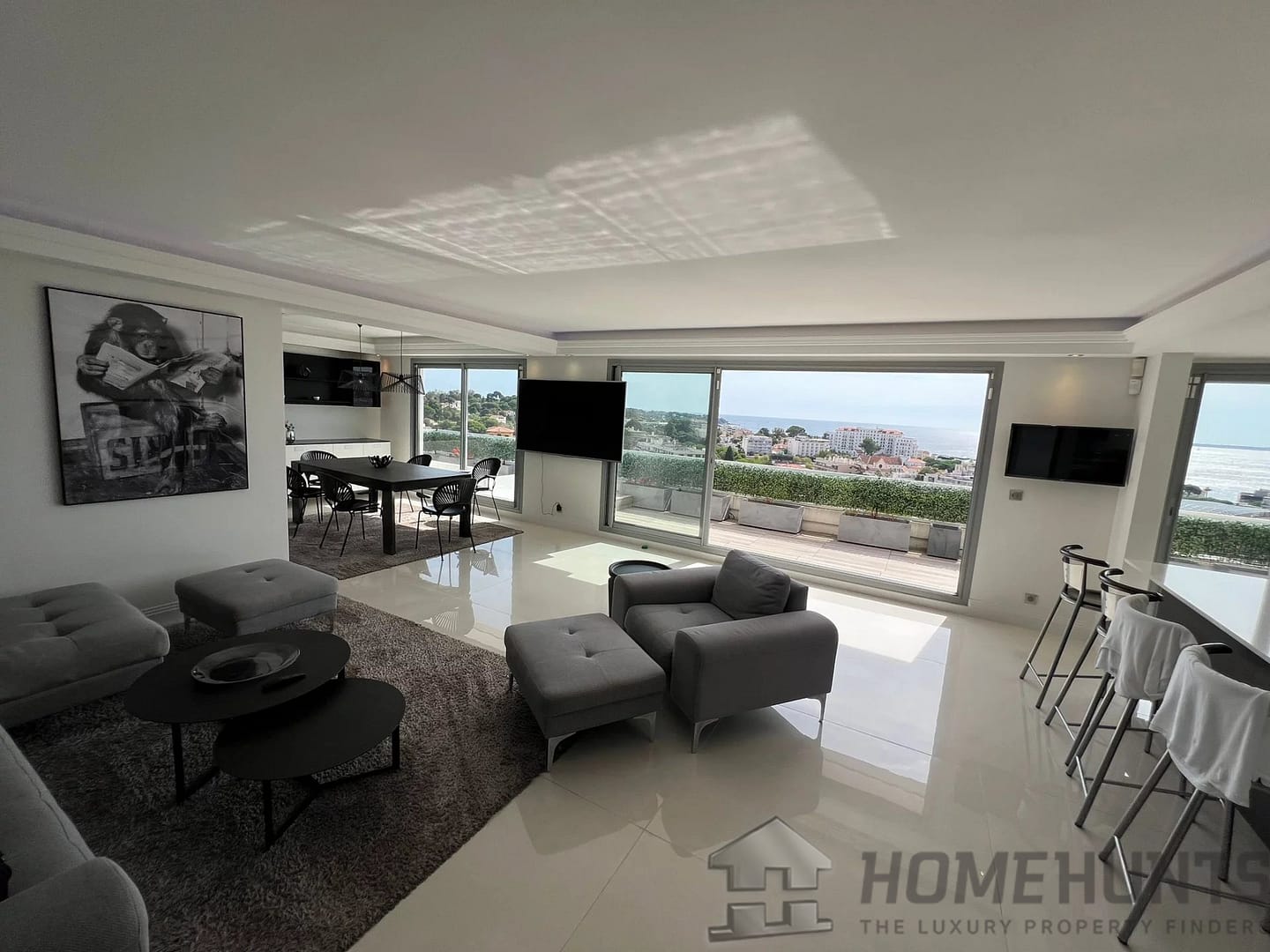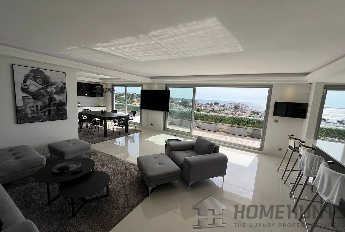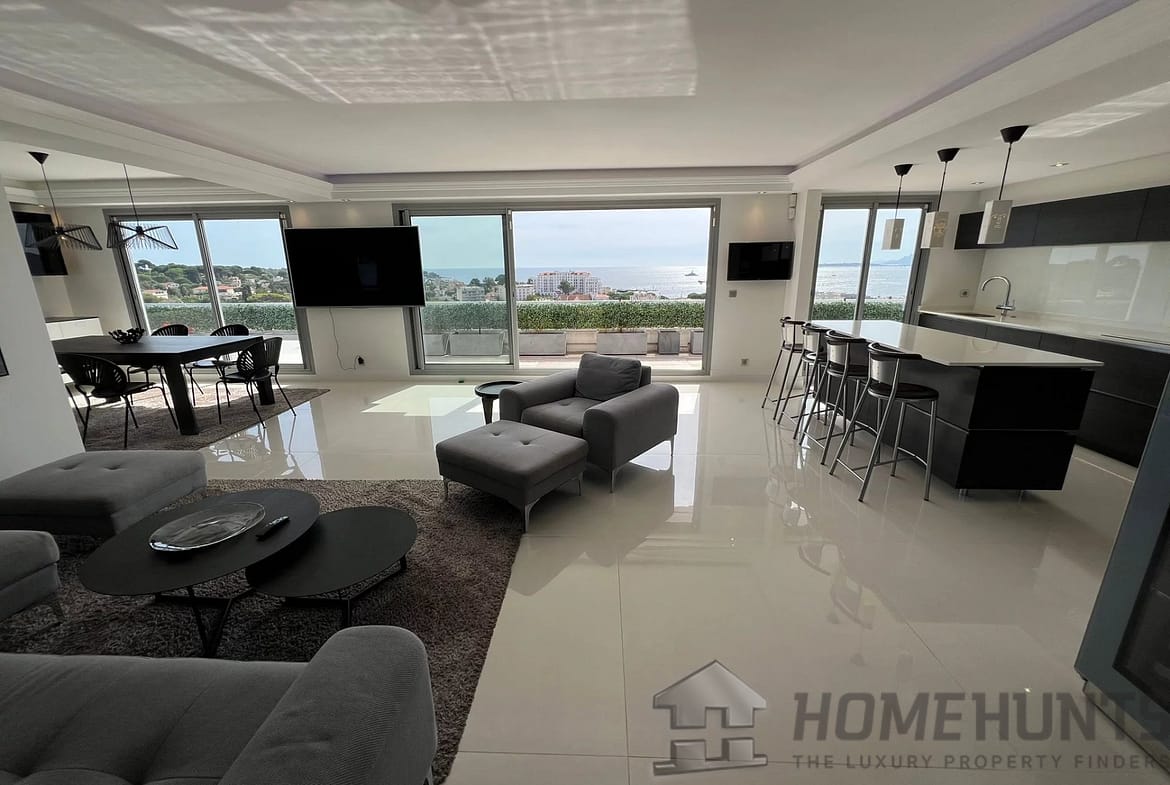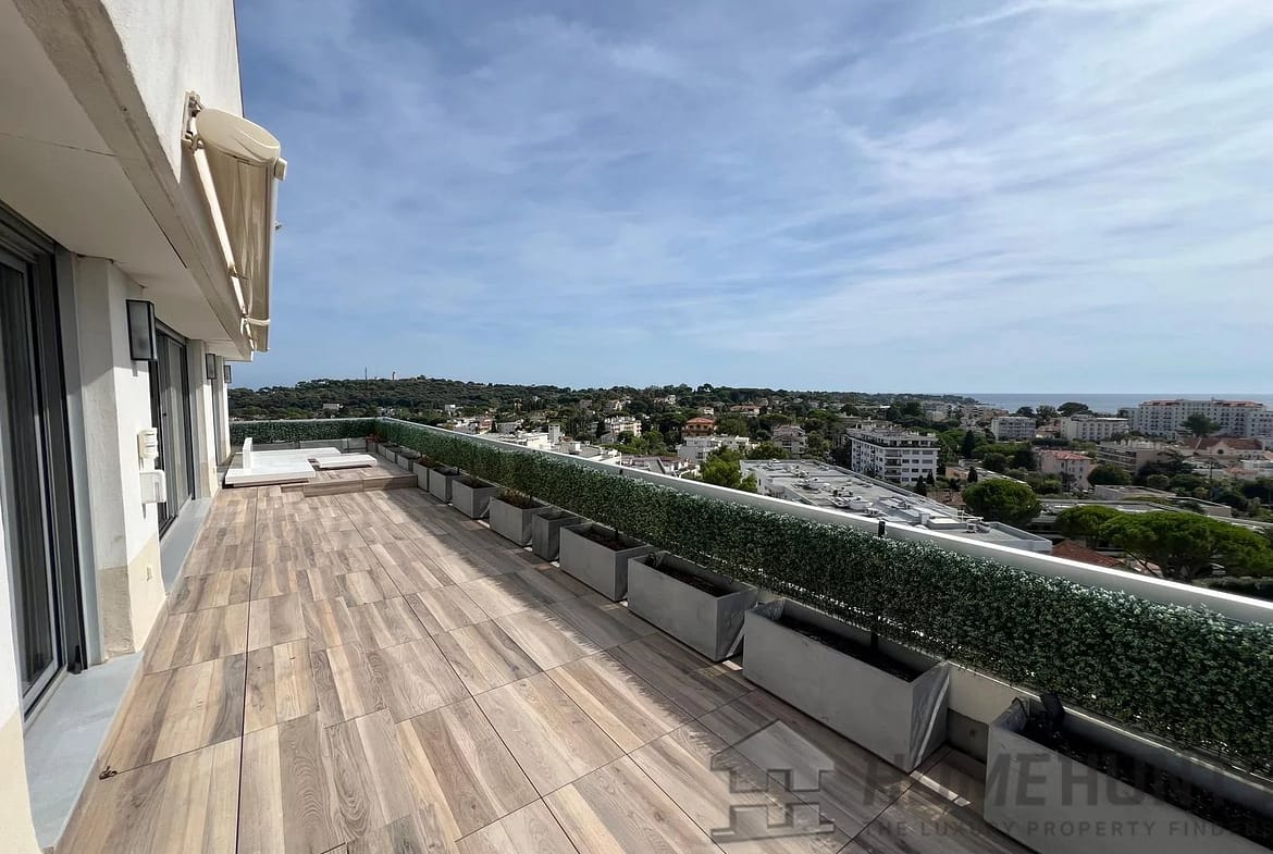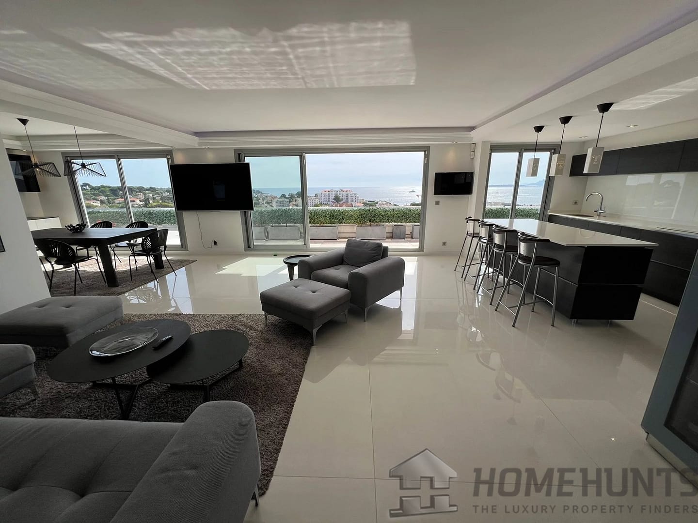 Magnificent entirely refurbished apartment on the 9th floor, with a private lift. Exceptional 360° views. Ideal location just minutes´ from the beaches and the shops of Juan les Pins.