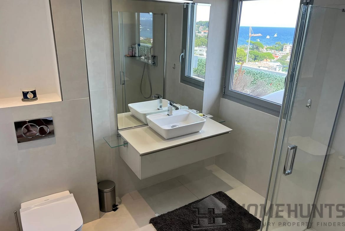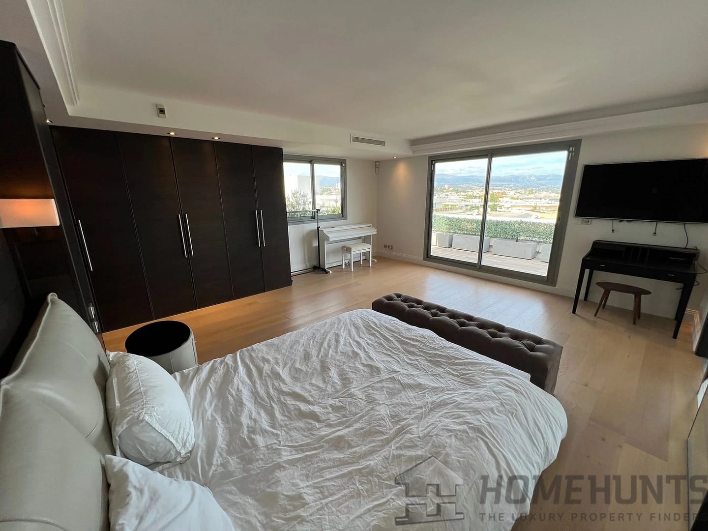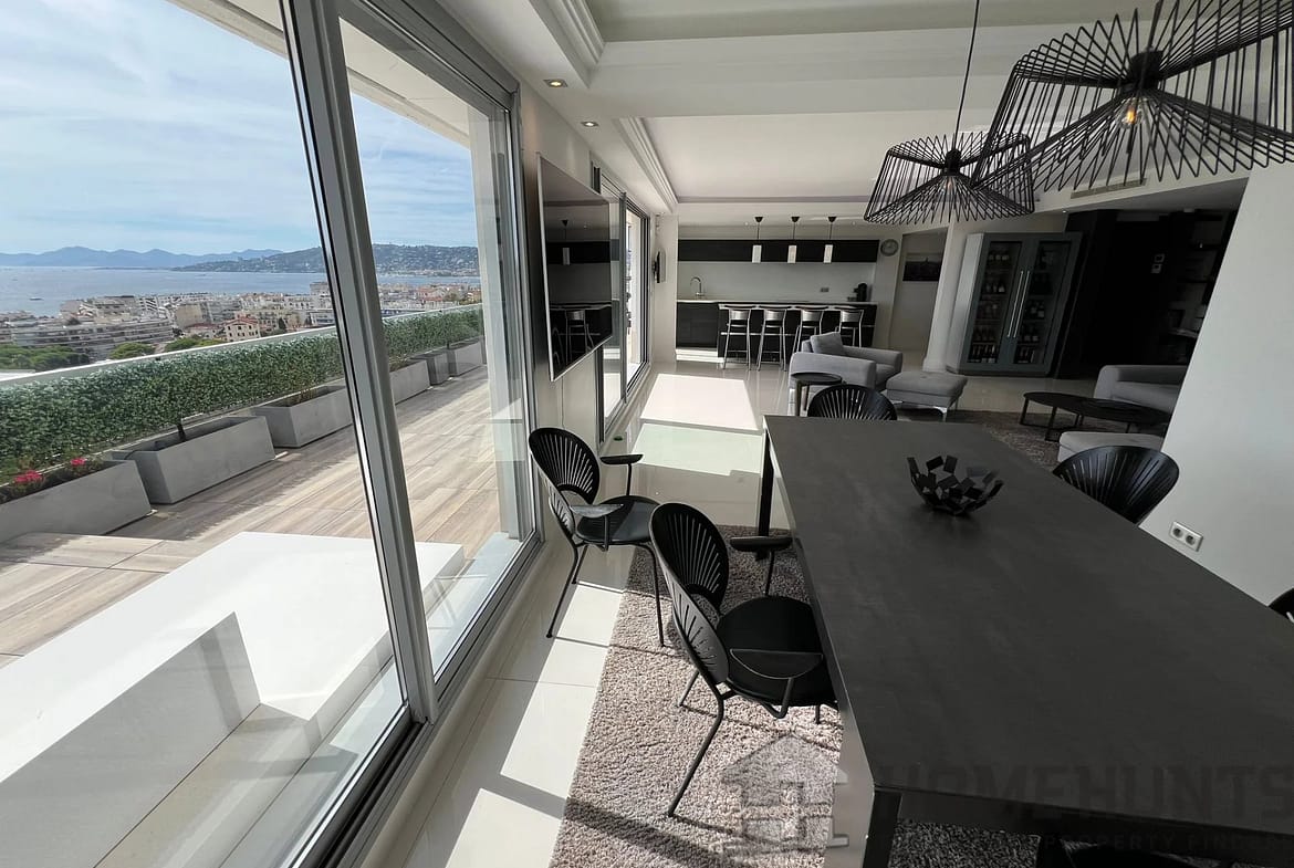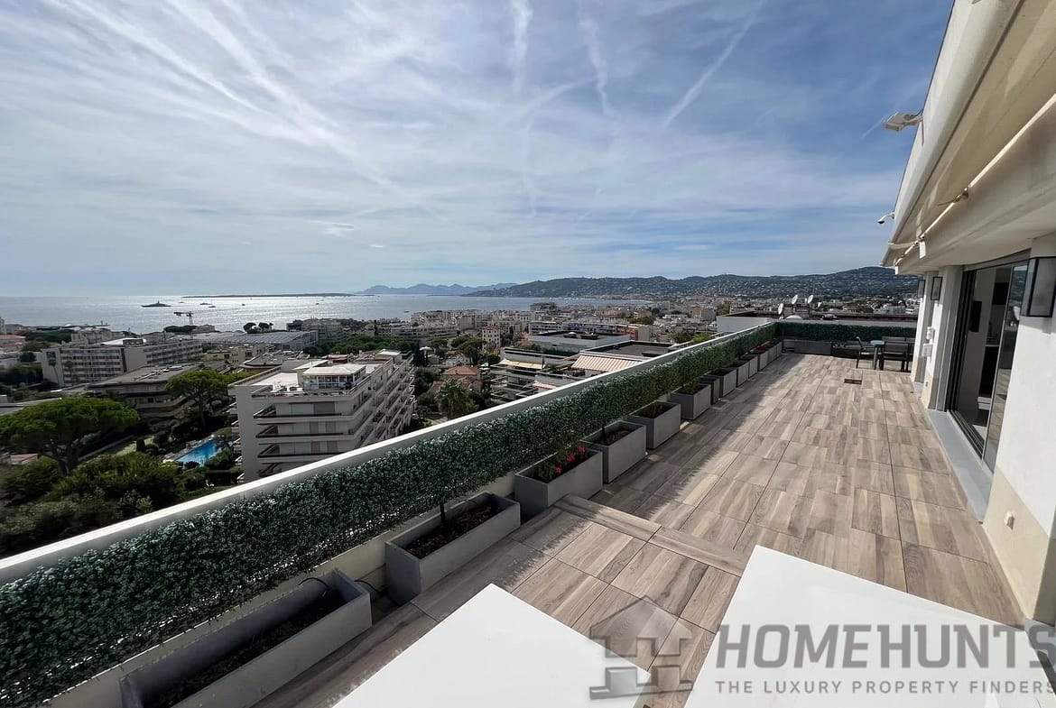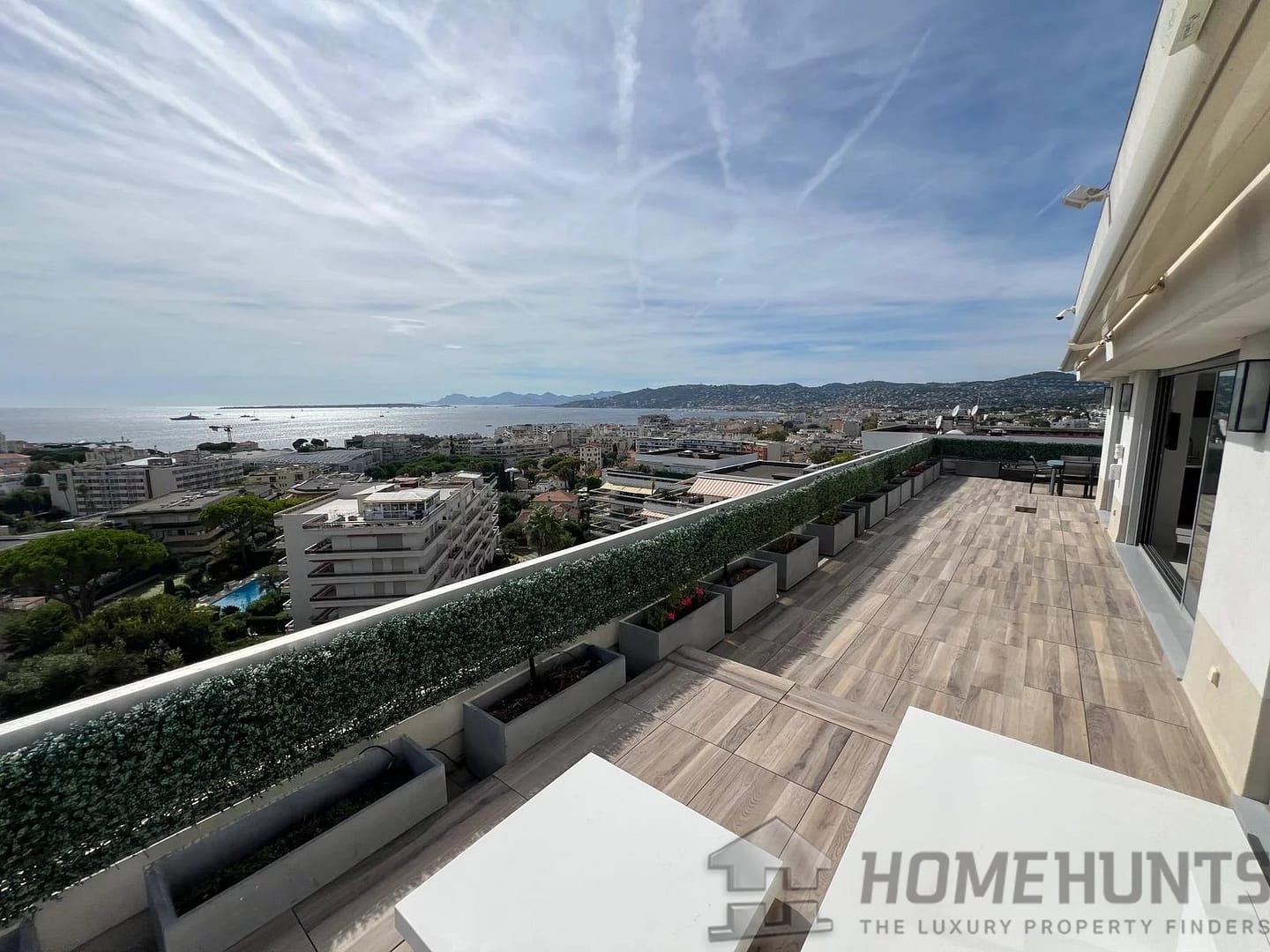 Magnificent entirely refurbished apartment on the 9th floor, with a private lift. Exceptional 360° views. Ideal location just minutes´ from the beaches and the shops of Juan les Pins.
