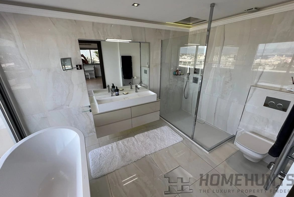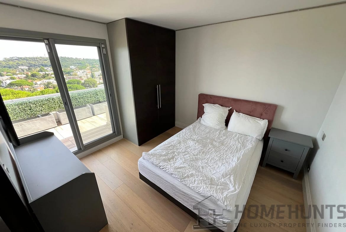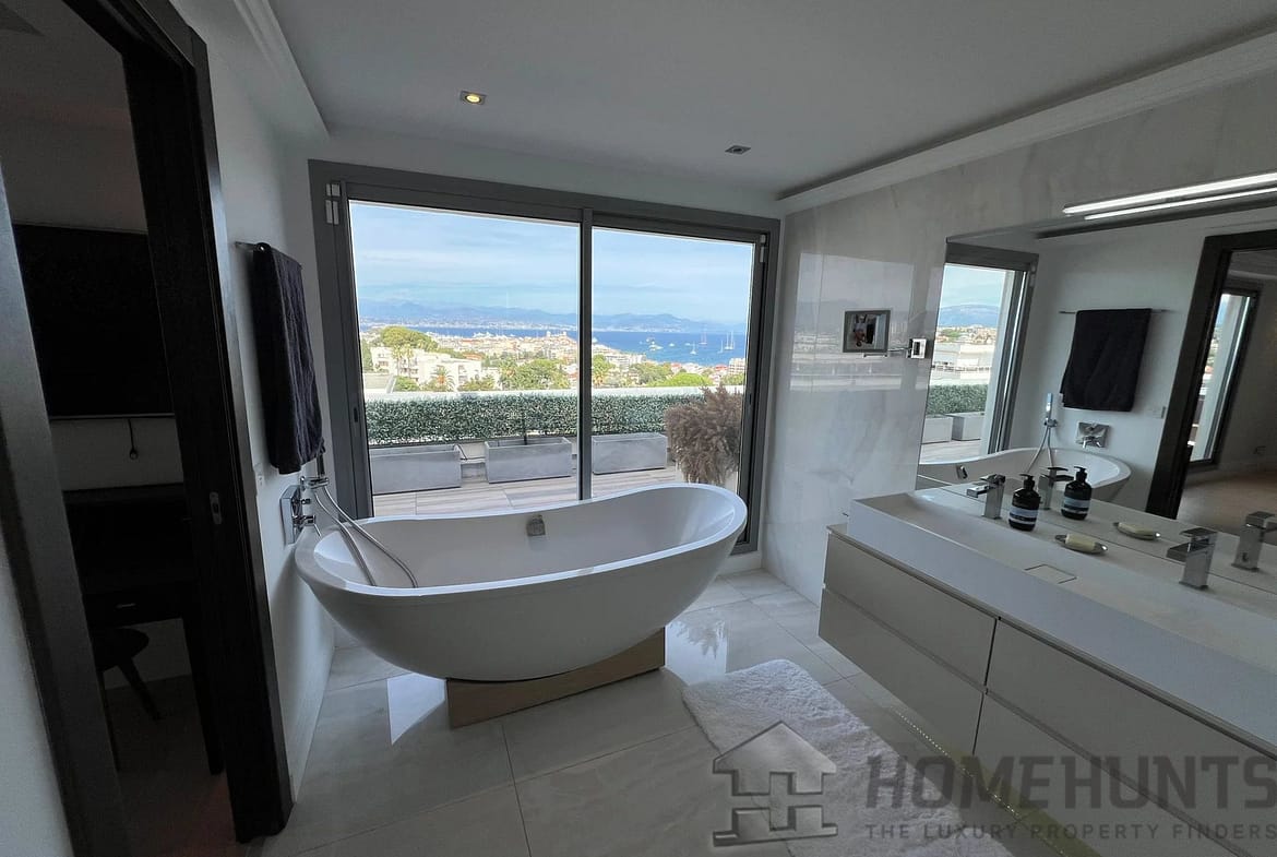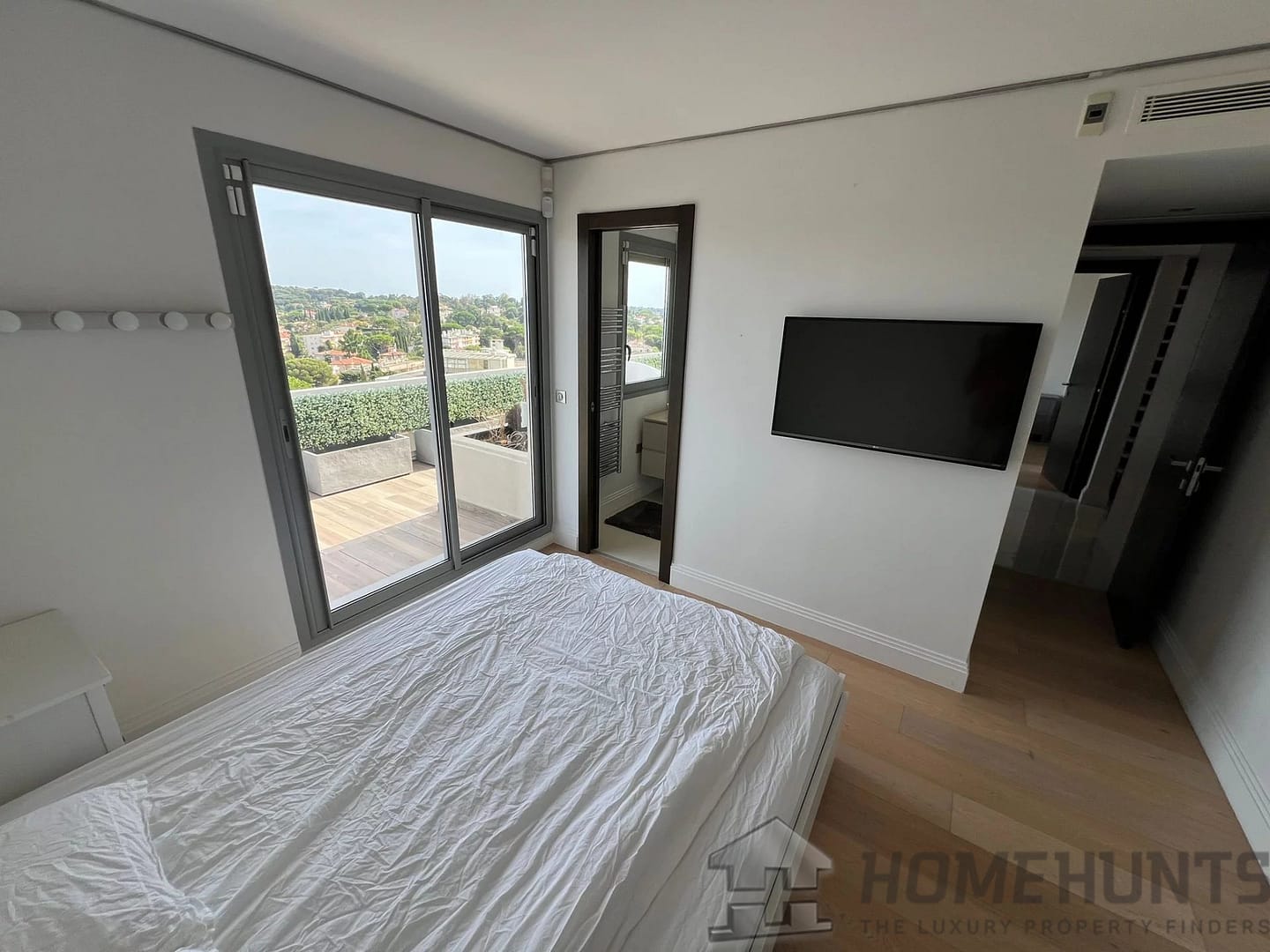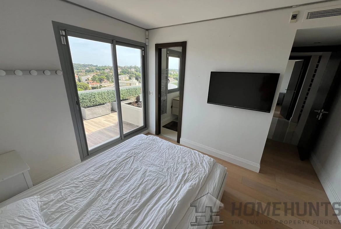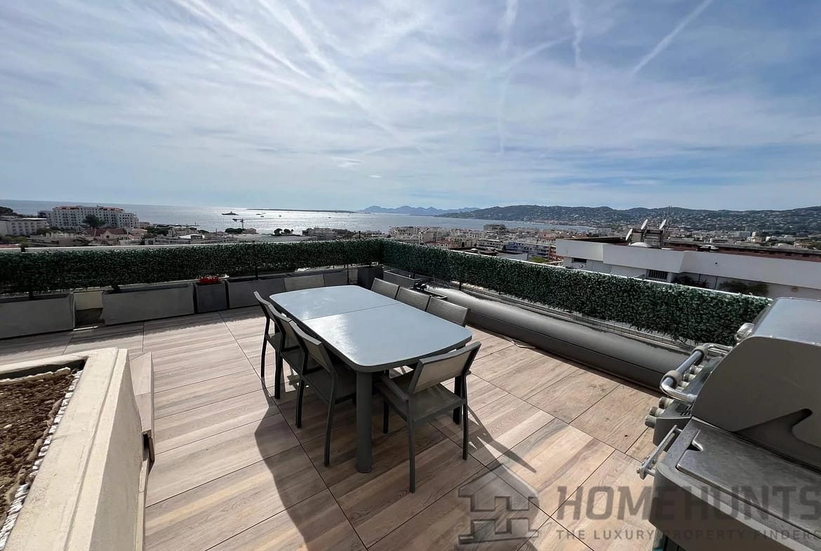 Magnificent entirely refurbished apartment on the 9th floor, with a private lift. Exceptional 360° views. Ideal location just minutes´ from the beaches and the shops of Juan les Pins.