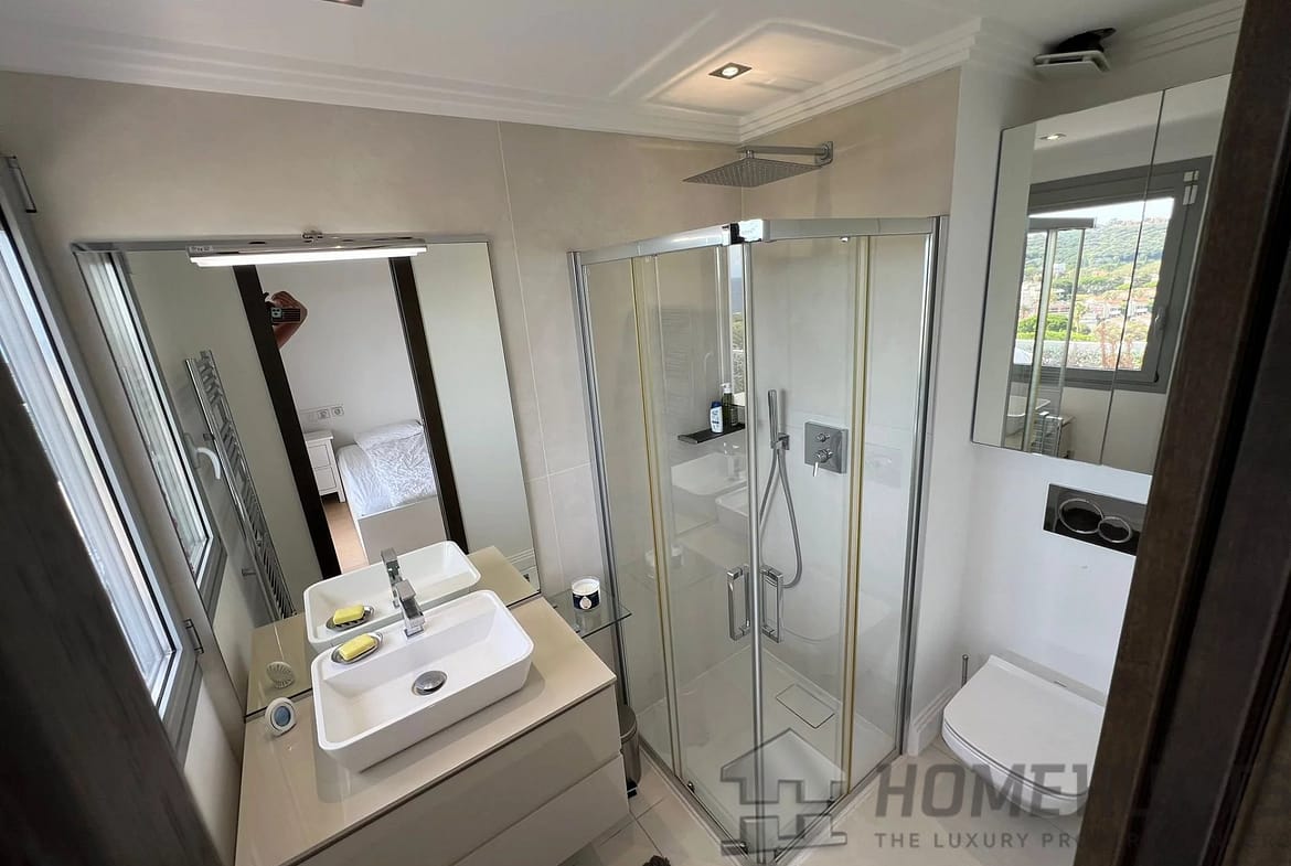 The living surface of 142 m2 is distributed as follows: a living/dining area, an open plan equipped kitchen, a master bedroom with its bathroom and dressing, 2 bedrooms with shower rooms.