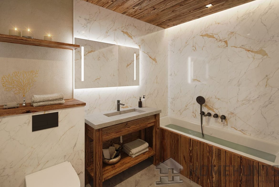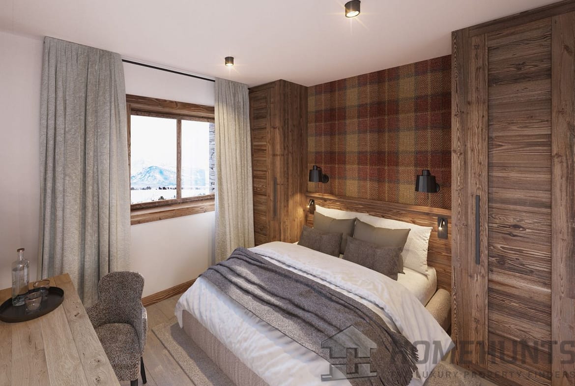 A south-facing balcony completes this space, offering panoramic views of the surrounding mountains.