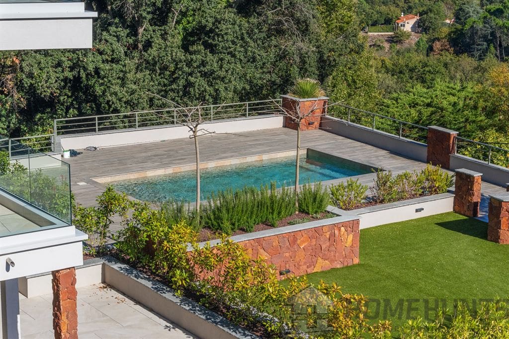 The secure residence also benefits from a landscaped garden and an elegant swimming pool.
