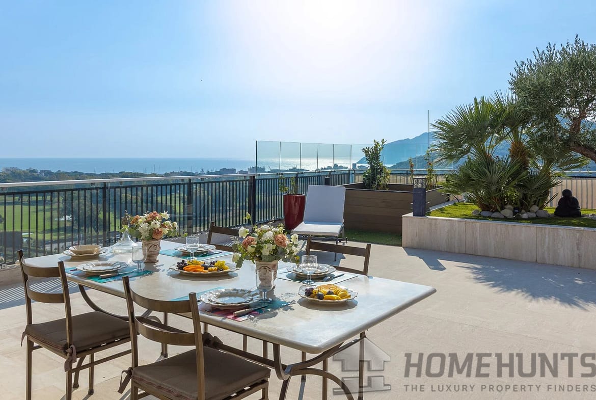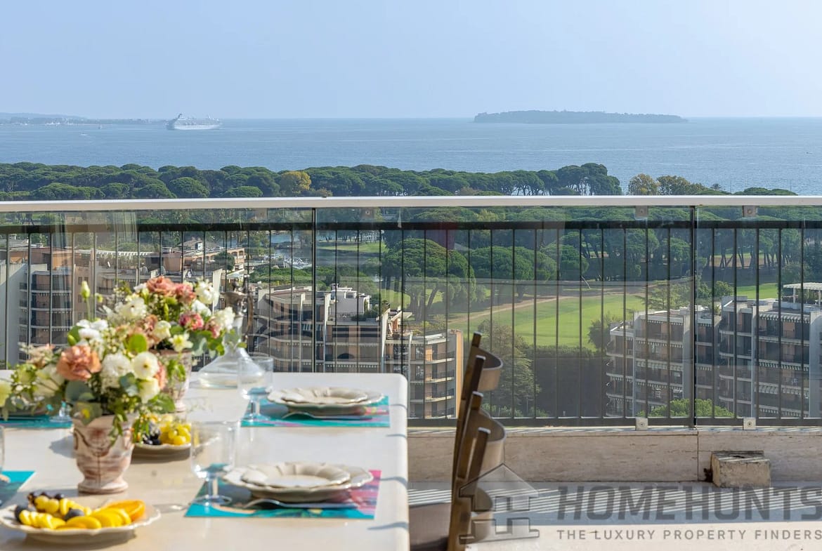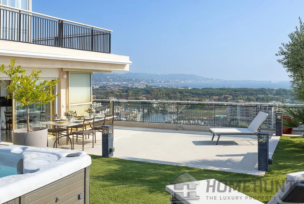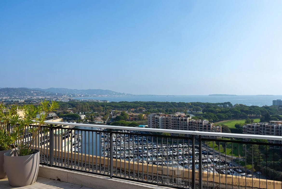 Penthouse of approximately 175 m2 located on the rooftop, offering a panoramic view of the sea, the golf course, and the Esterel mountains.
