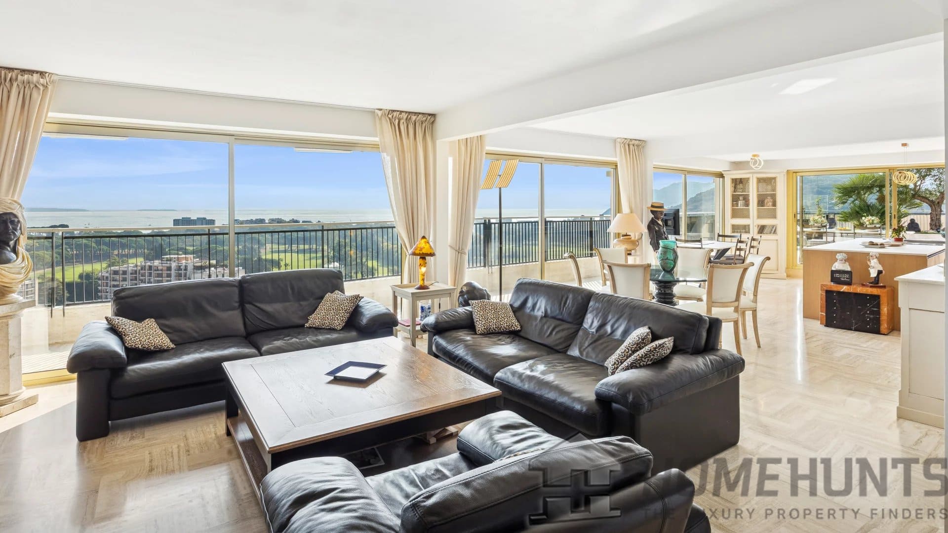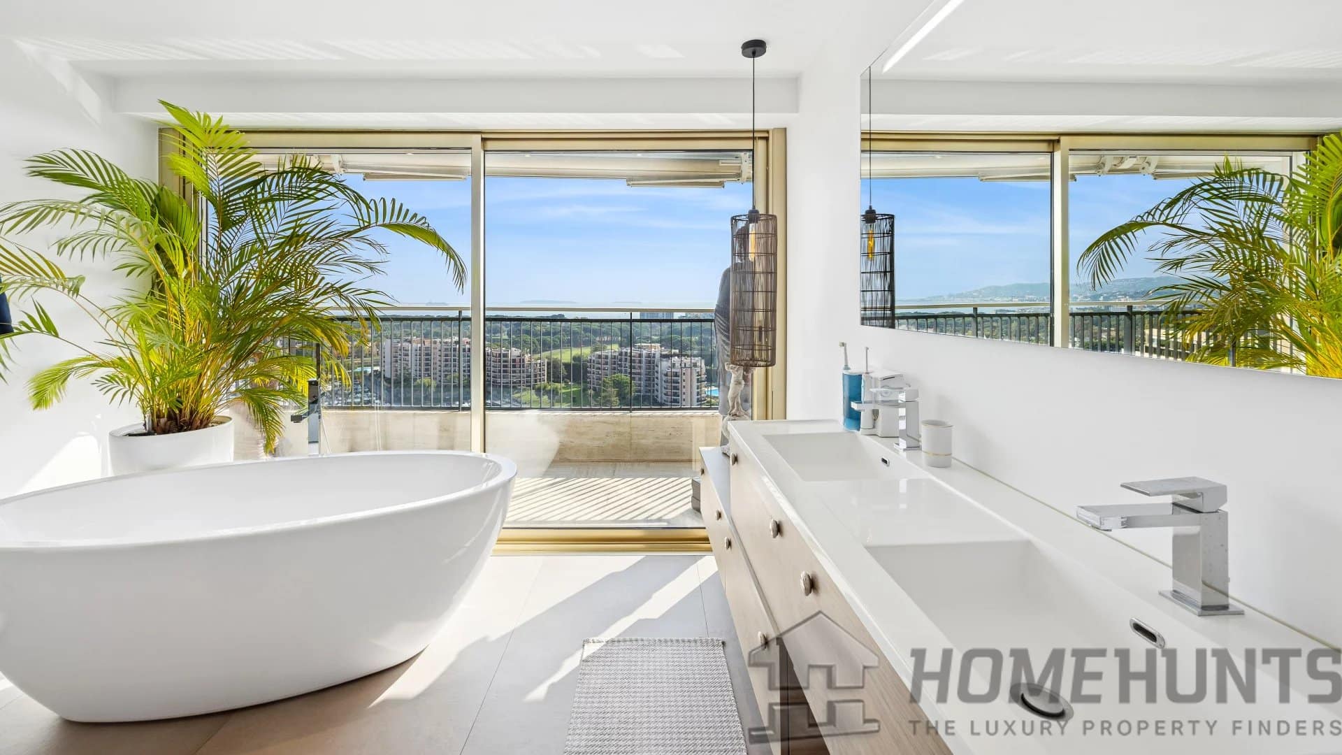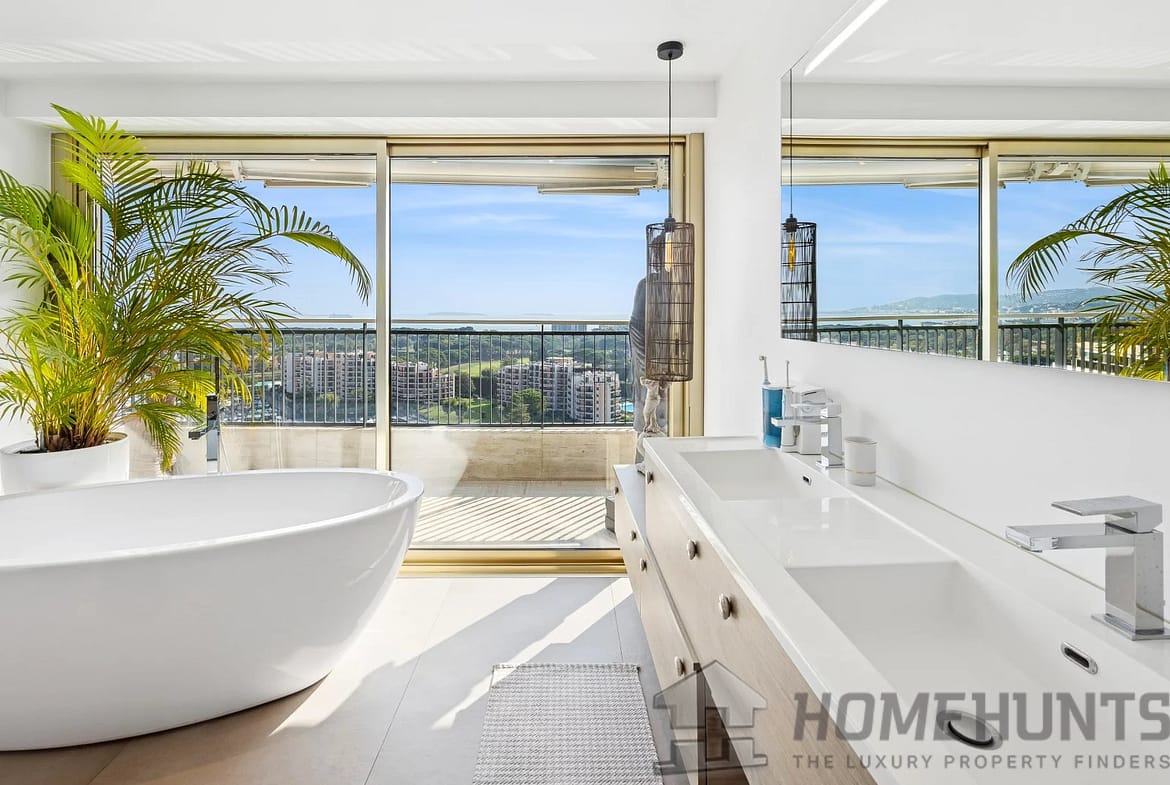 Several terraces and balconies, totaling over 300 m2 of outdoor space, offer breathtaking panoramic views over the Bay of Cannes and the Lerins Islands.