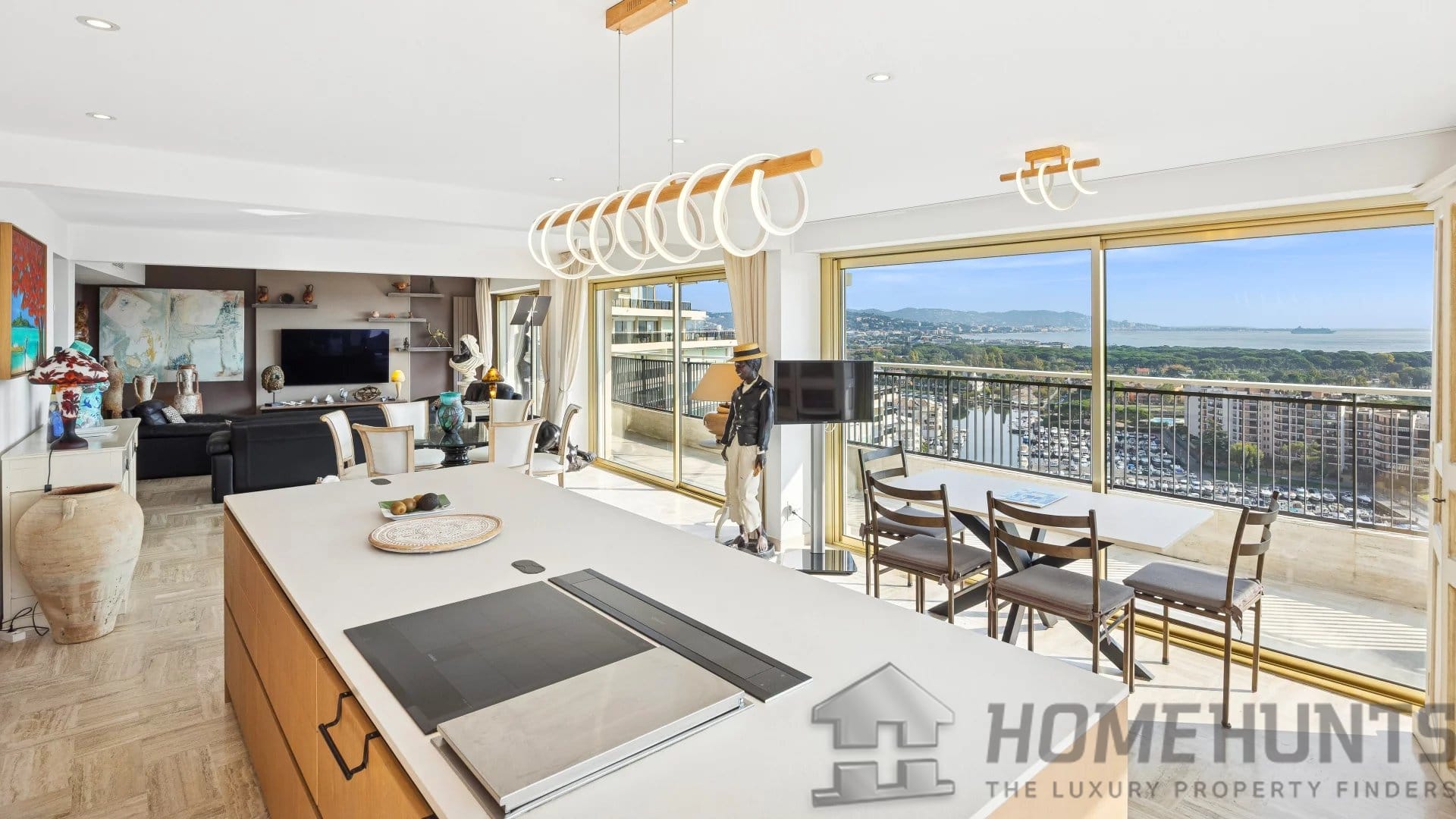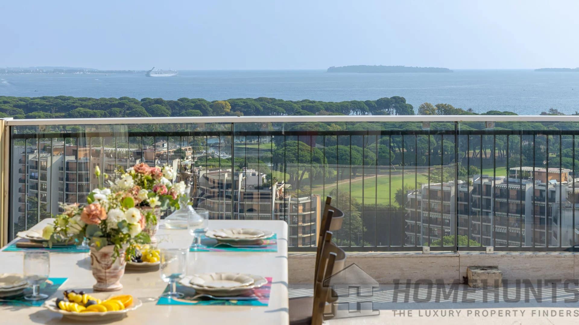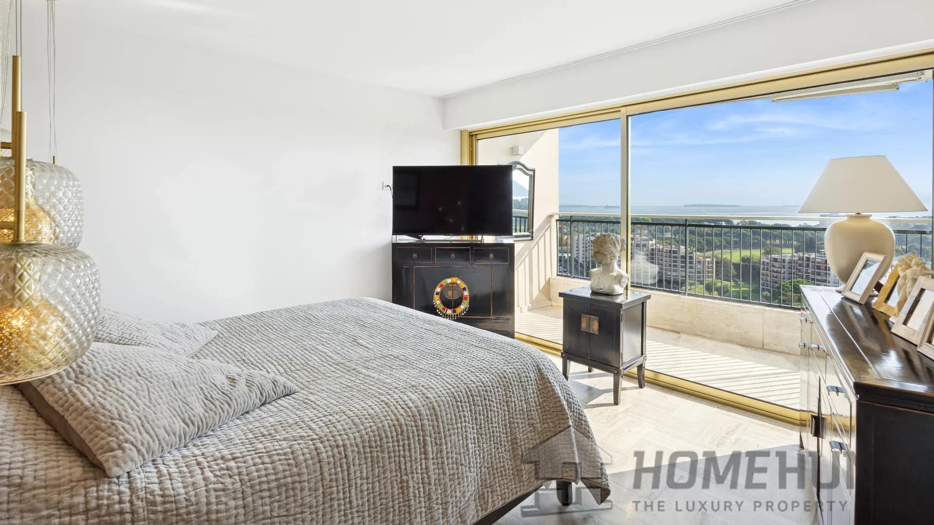 Several terraces and balconies, totaling over 300 m2 of outdoor space, offer breathtaking panoramic views over the Bay of Cannes and the Lerins Islands.