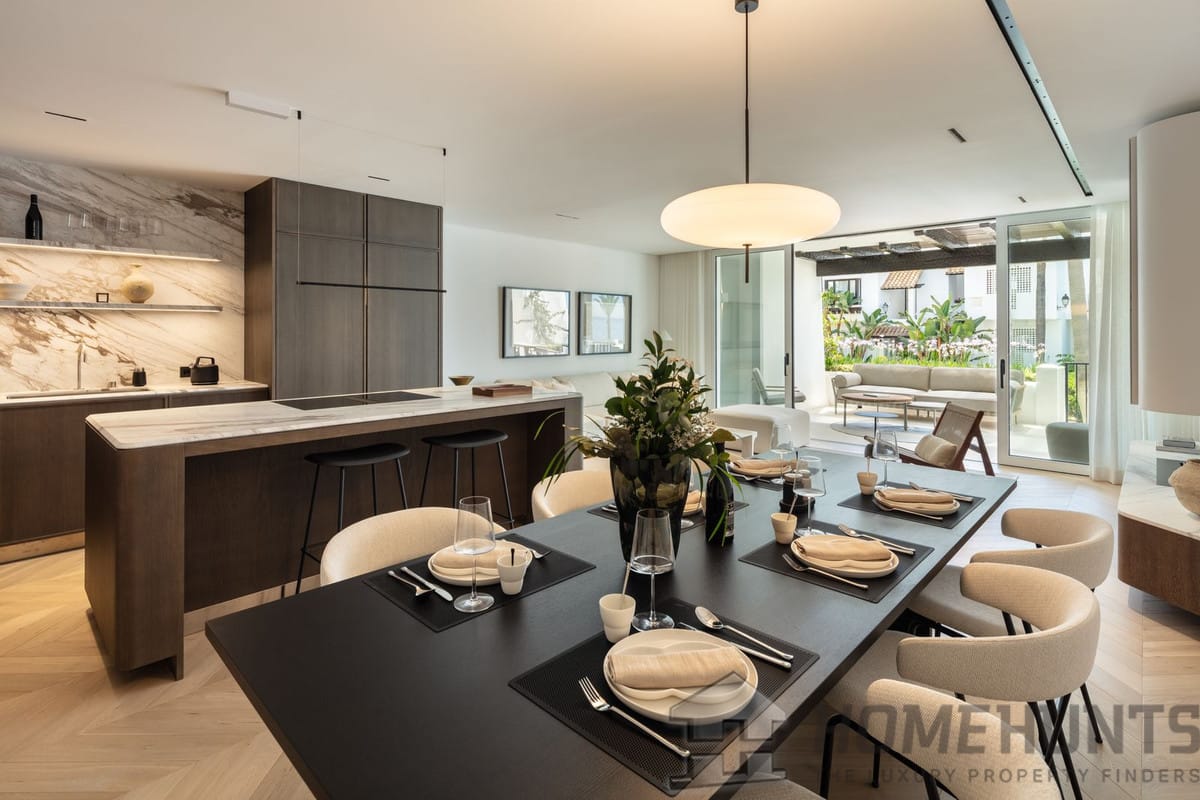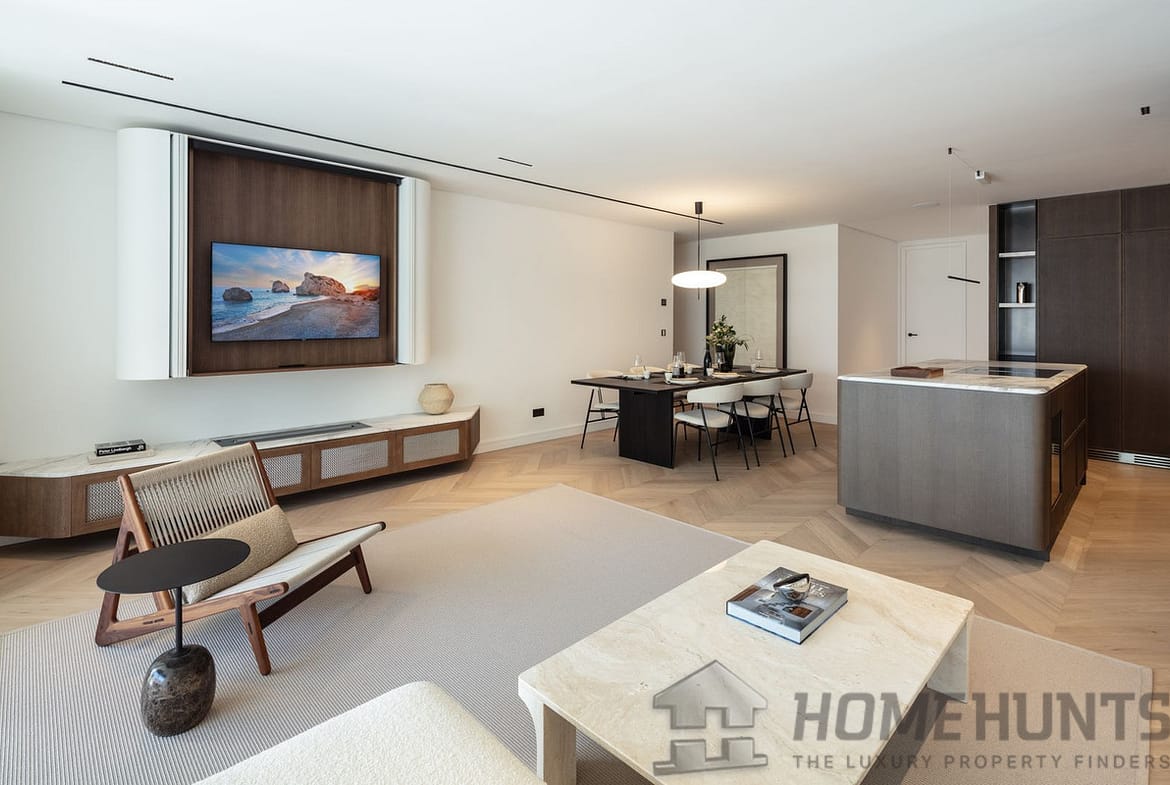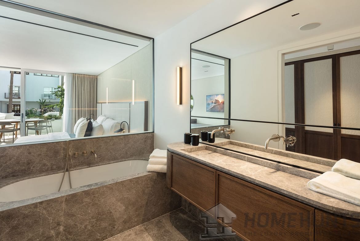 The apartment exudes seaside sophistication, embracing its resort surroundings to depict the luxurious Mediterranean lifestyle.