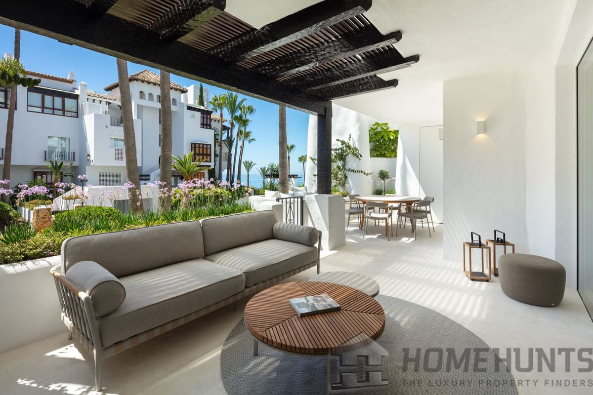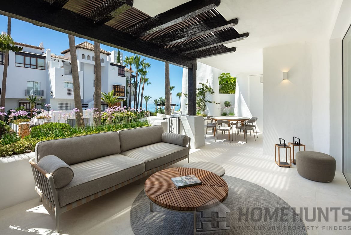This is a stunning modern apartment sporting sea views within the exclusive enclave of the Puente Romano Resort on the Marbella Golden Mile.