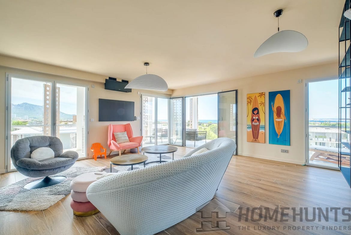 Located on the 7th and top floor of a recent and secure residence built in 2022, this magnificent 3 bedroom apartment offers approximately 106 m2 of living space, high-end features, and panoramic views of the sea and hills.