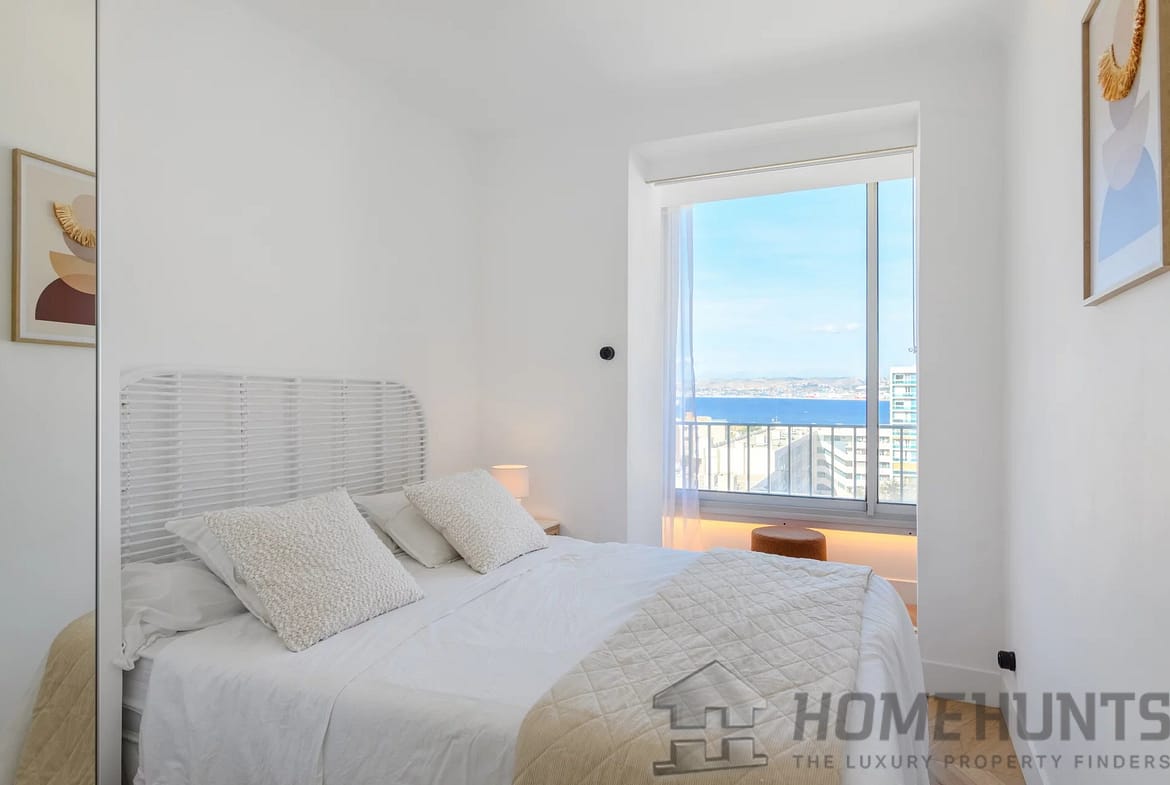 Located on a high floor, it offers breathtaking panoramic sea views, a living picture where only the blue of the sky and the Mediterranean Sea can be seen. In the heart of the 7th arrondissement, this apartment charms with its elegant renovation and high-quality amenities. The light-filled living room flows naturally into a custom-built open-plan kitchen, creating a harmonious living space facing the sea. Two bedrooms complete the apartment, as well as a bathroom with refined finishes. Numerous custom-built storage spaces make this property very functional.