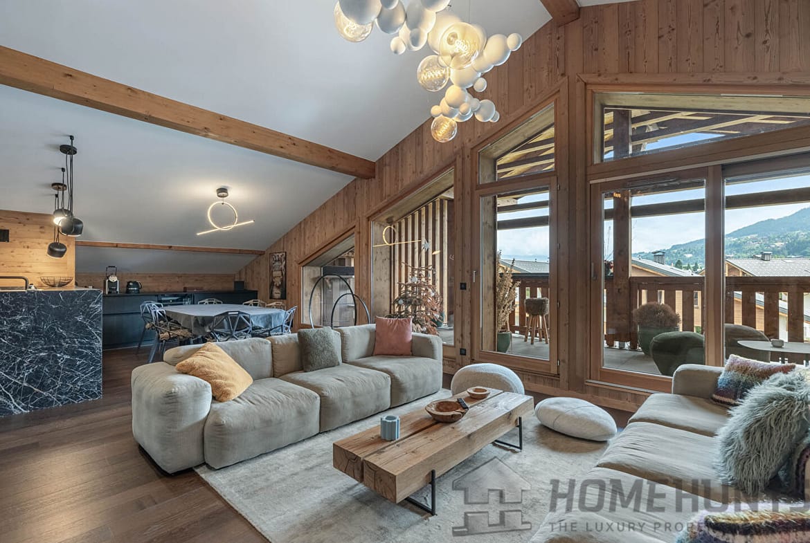 Just a few minutes walk from the historic centre of Megeve, these chalets nestle on the foothills of the Jaillet and Christomet massifs. Constituting a hamlet of 4 prestigious chalets composed of apartments of great standing. Set back from the road, ideally exposed and sheltered from view by a fringe of vegetation, each chalet preserves comfort and privacy.