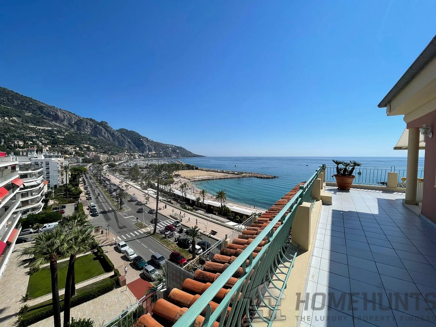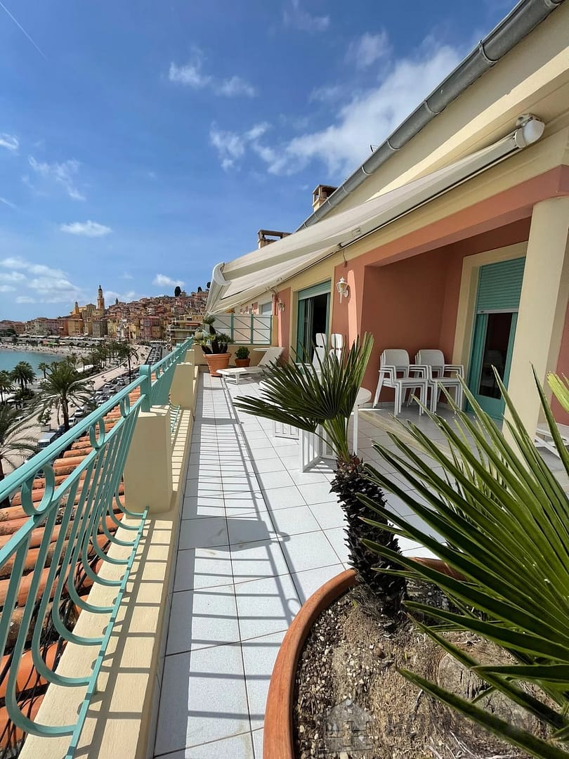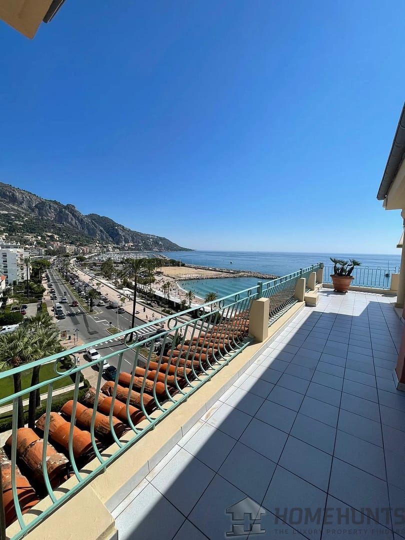 The first apartment has commanding seafront views with a 44 m2 angled terrace, imagine enjoying your morning coffee or savouring a glass of wine in the evening on the magnificent corner terrace, offering breathtaking views of the sparkling sea, the picturesque old town, and even the Italian border. A true living masterpiece to admire at every moment. There is a nice dining area and fully equipped kitchen, perfect for preparing delicious meals.
