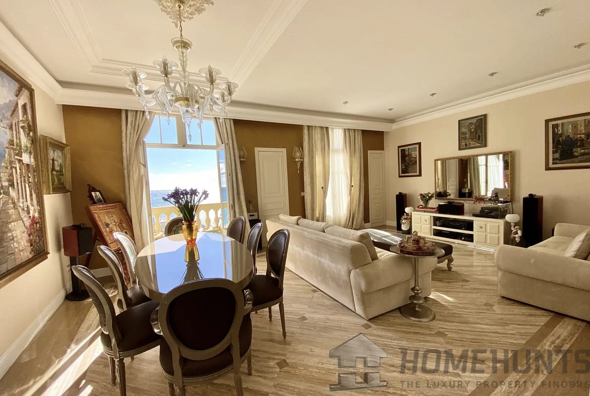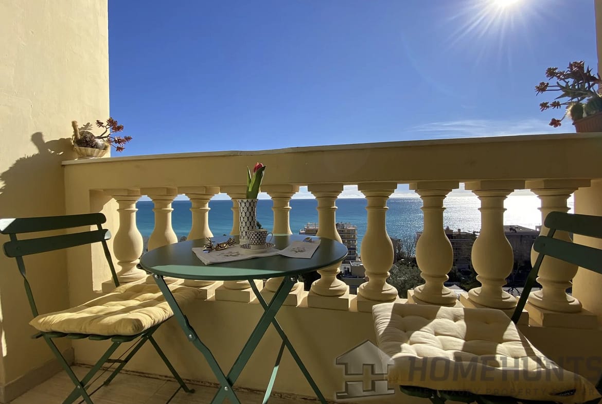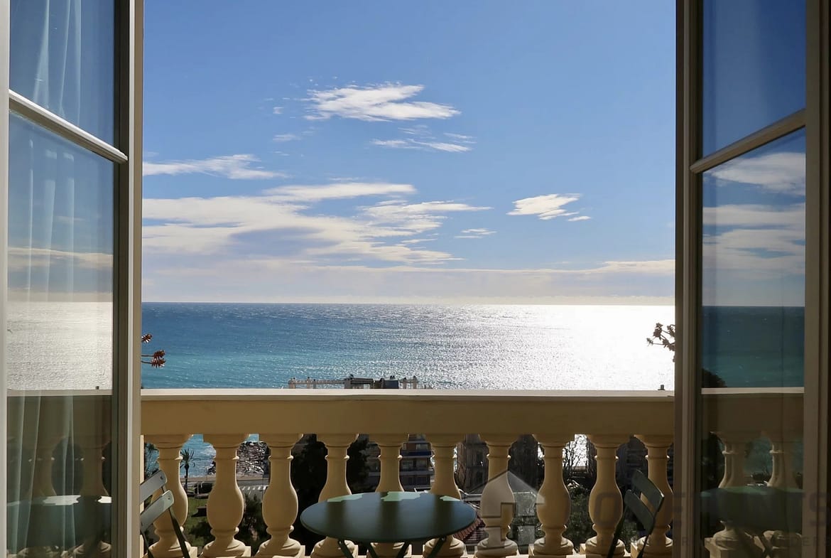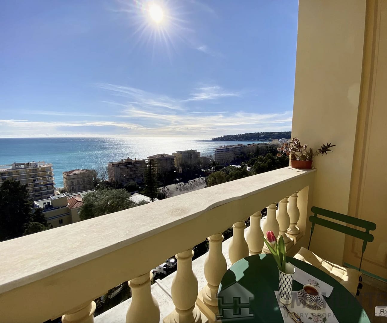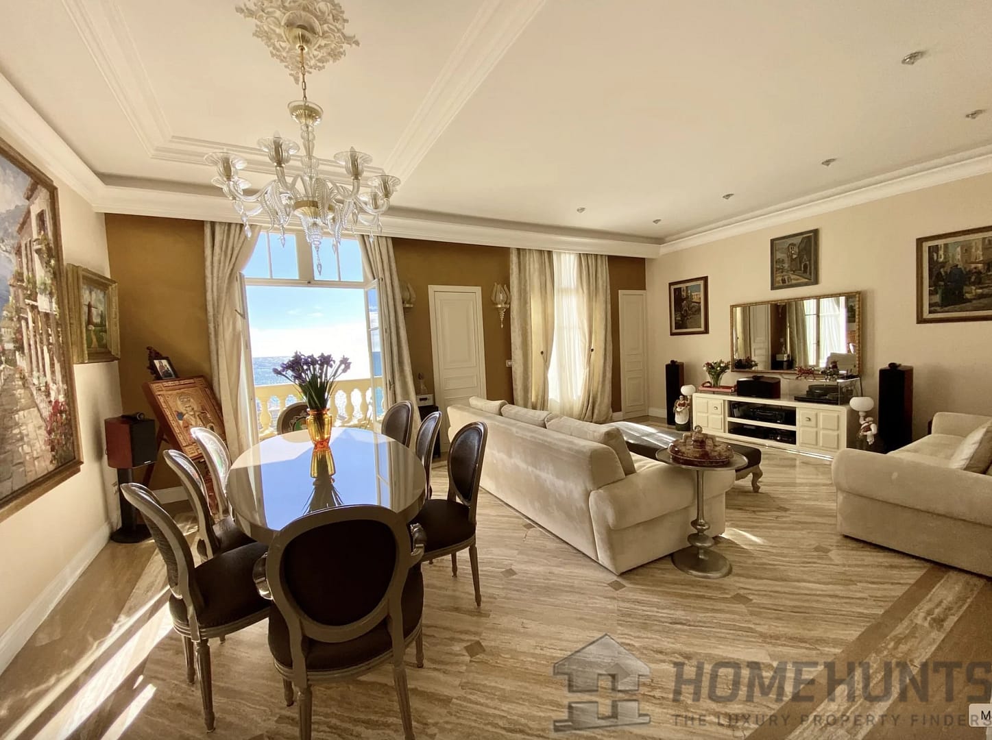 Located in a prestigious 18th-century building with park, on the 6th and top floor, this bright traversing apartment of approx. 140 m2 offers breathtaking panoramic views of the sea and the mountains.