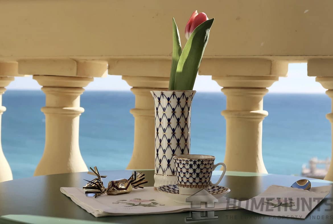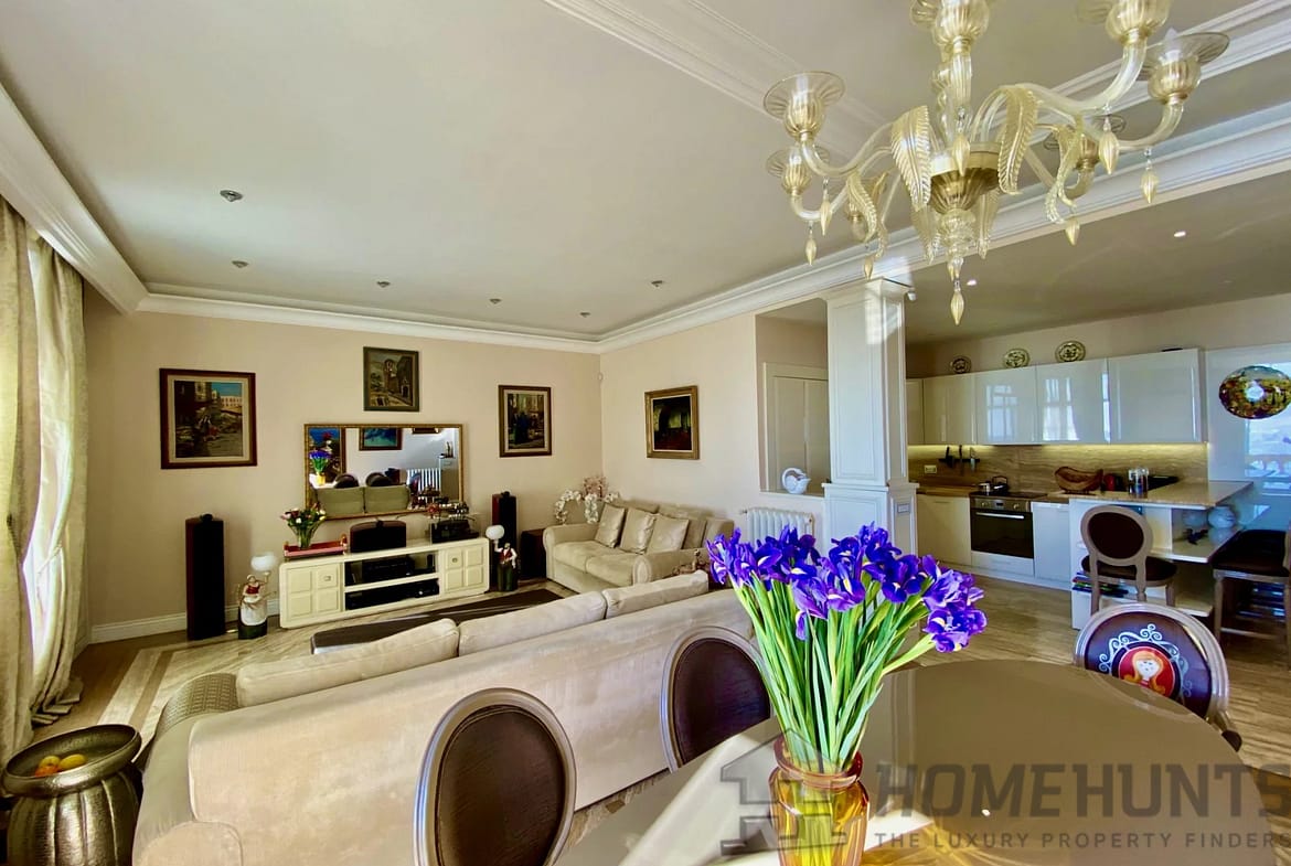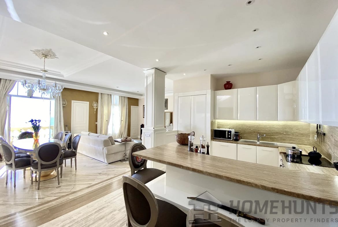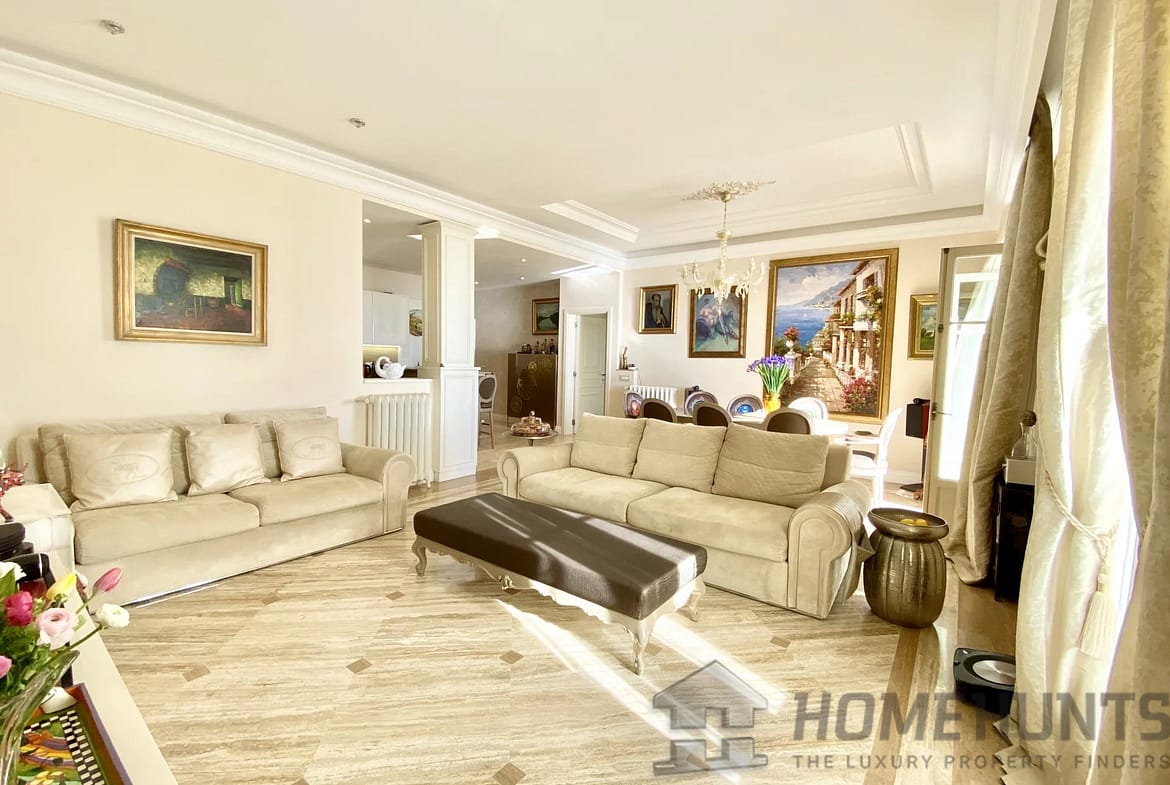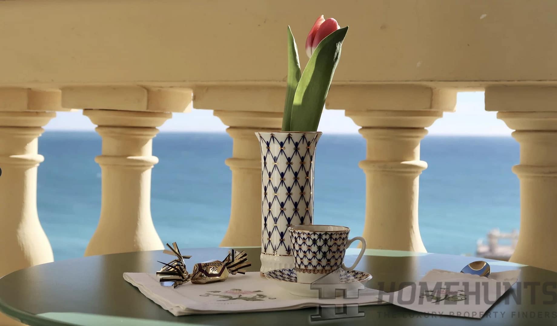 Located in a prestigious 18th-century building with park, on the 6th and top floor, this bright traversing apartment of approx. 140 m2 offers breathtaking panoramic views of the sea and the mountains.