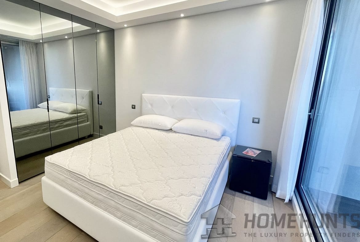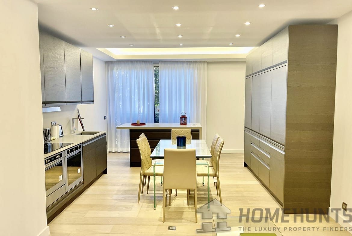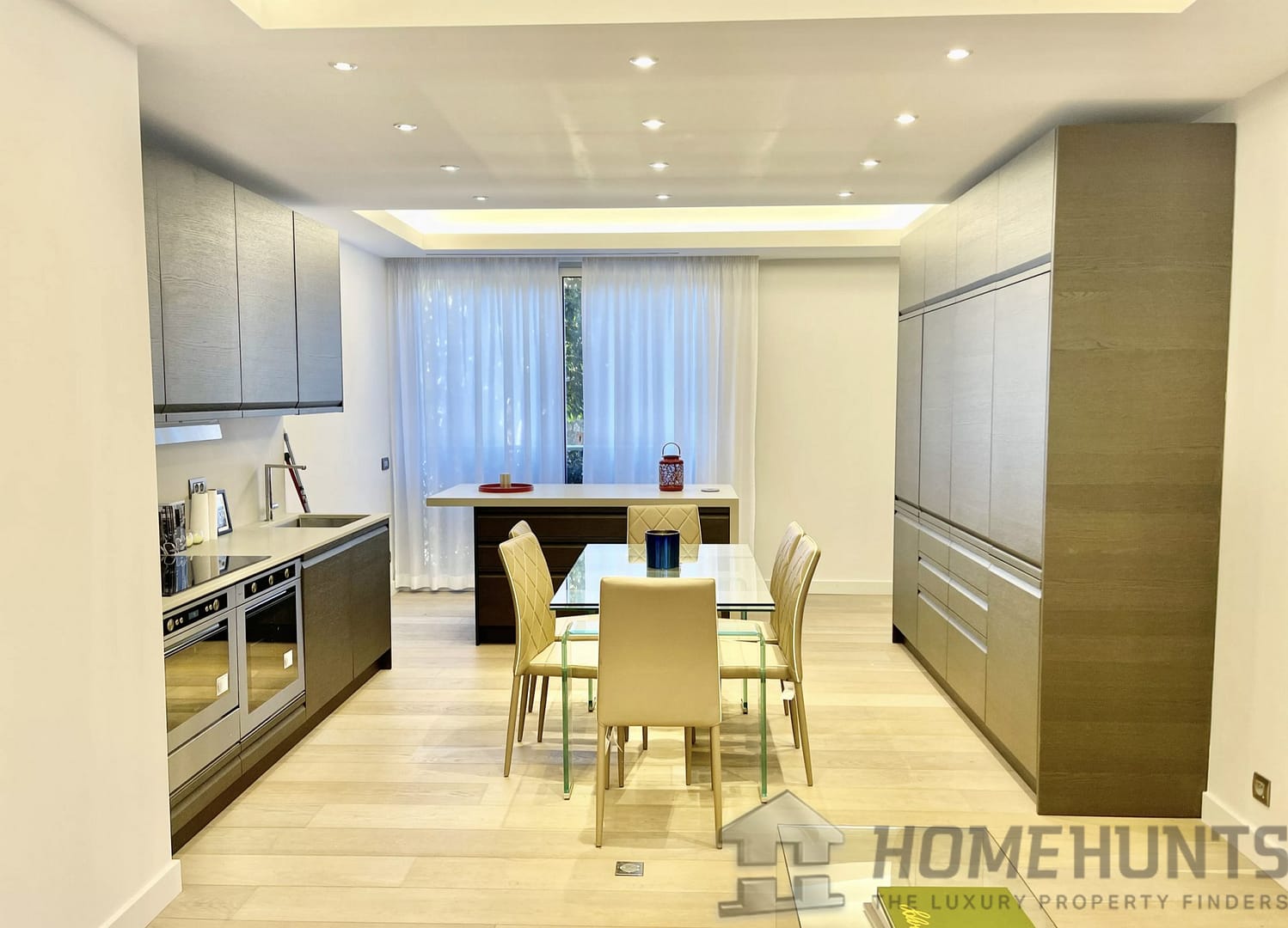 This building offers security and a 24-hour concierge service.It has a total area of 128 m2, modern accommodation consisting of an entrance hall leading to the living room, a fully equipped American kitchen, two bedrooms en suite with each their bathroom and dressing room, two other bedrooms, a shower room, and a guest toilet.