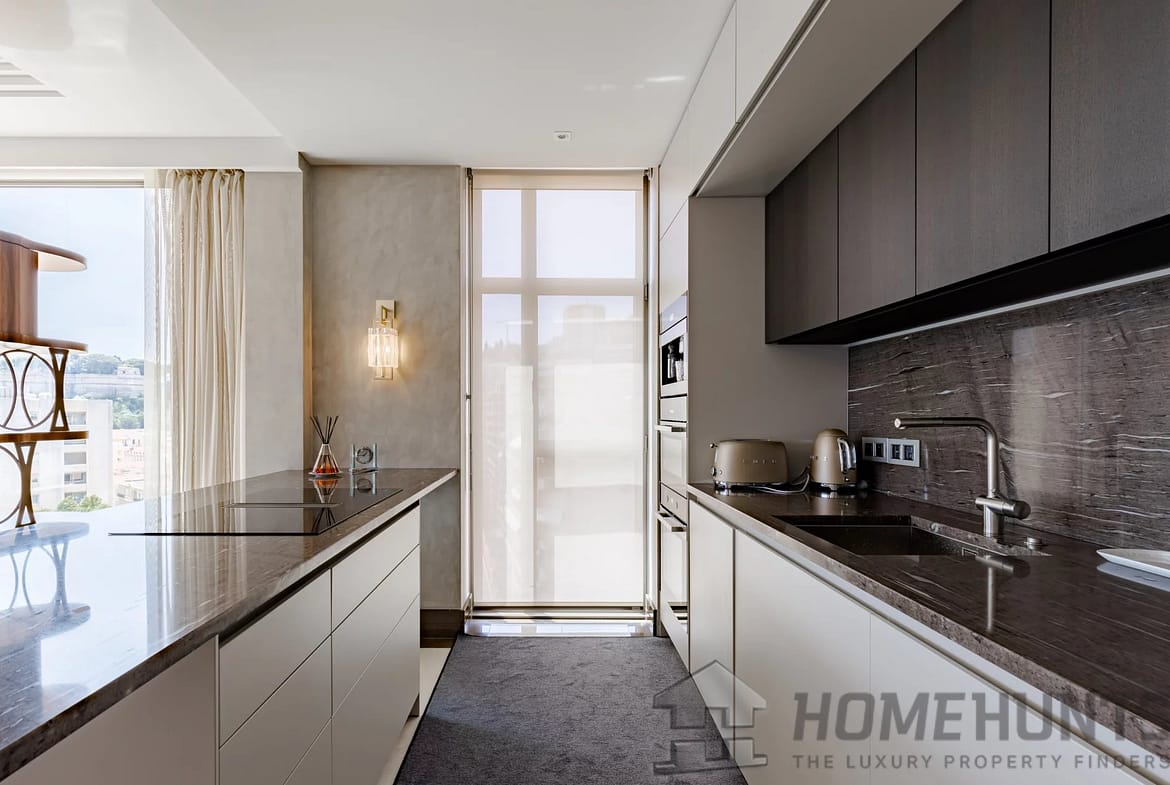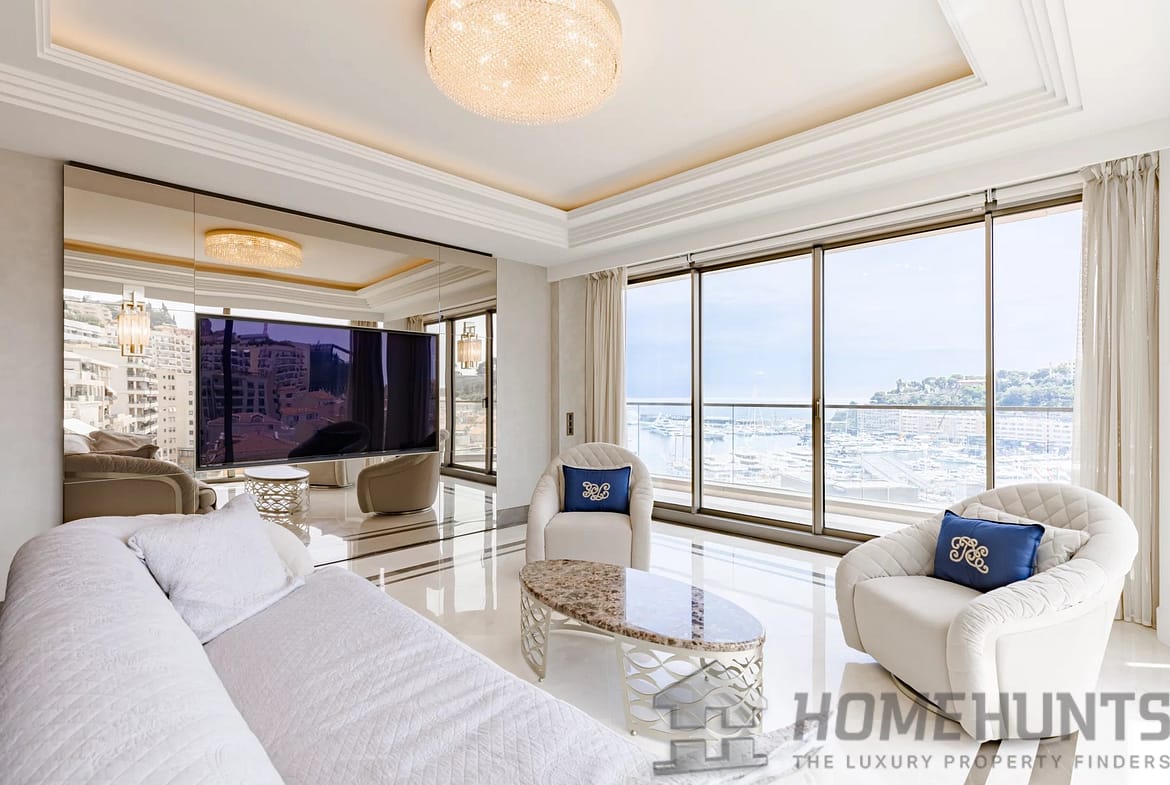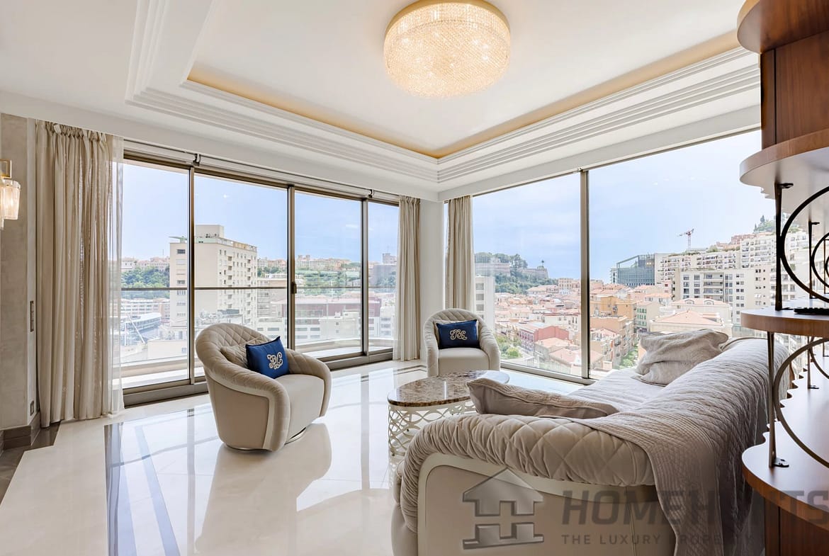 This 3-bedroom apartment, measuring 150 m2, is situated on the upper floor, offering panoramic views over Monaco. It features high-end finishes, a fitted kitchen, and a parking space.