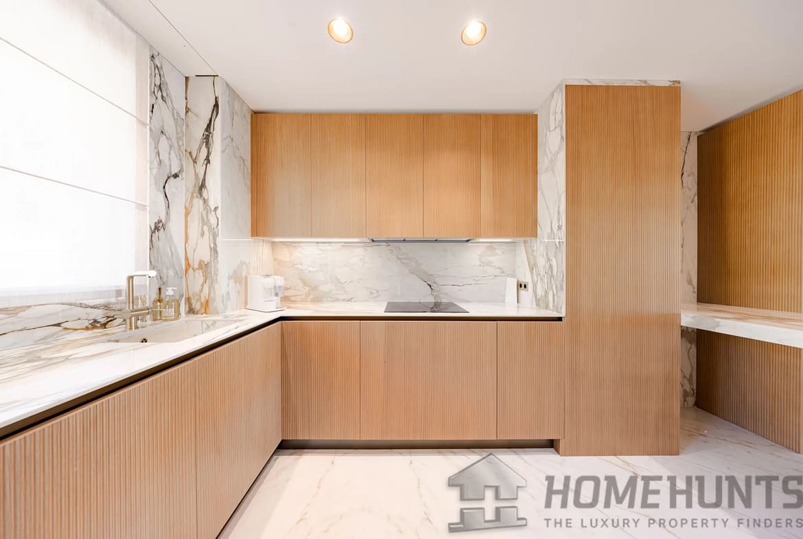 To the opposite side, the elegantly appointed kitchen offers modern convenience in a refined setting, fully equipped for both daily living and entertaining.