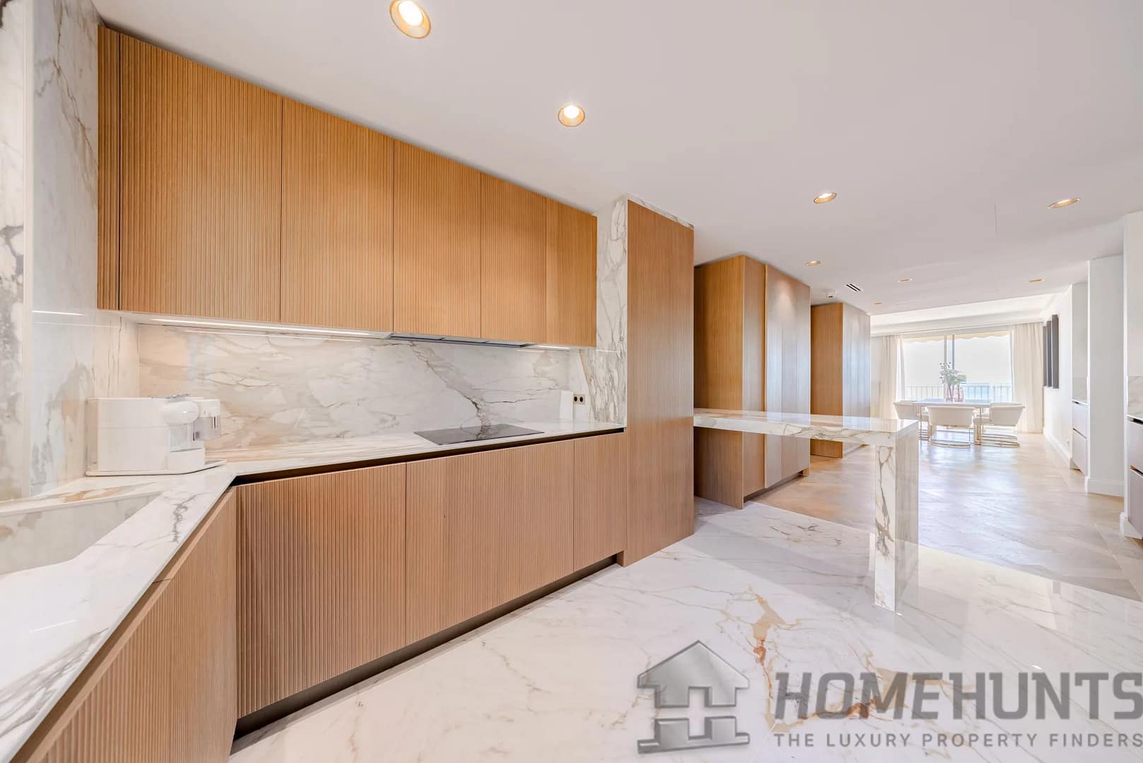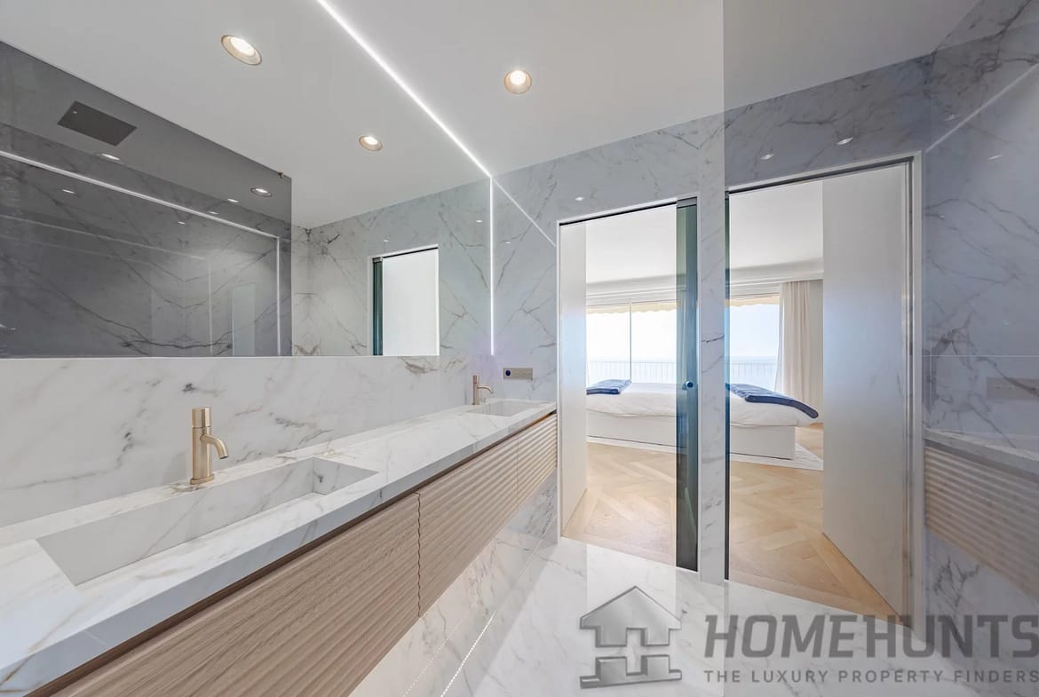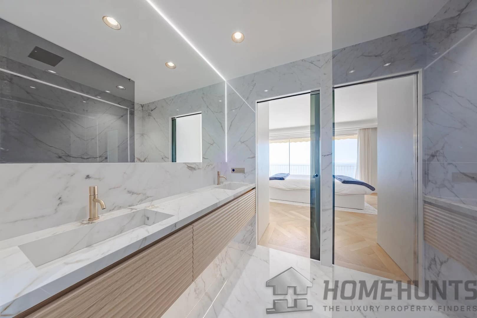 Upon entry, a welcoming hall flows seamlessly into a generous open-plan living and dining area, bathed in natural light. Floor-to-ceiling sliding doors lead out to a spacious private terrace, where you can savour unobstructed sea views—a truly privileged setting to enjoy the Riviera lifestyle.