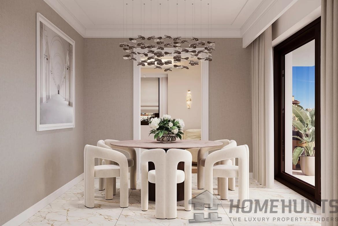 – An expansive living room and dining area, perfect for entertaining against a backdrop of sea and city lights