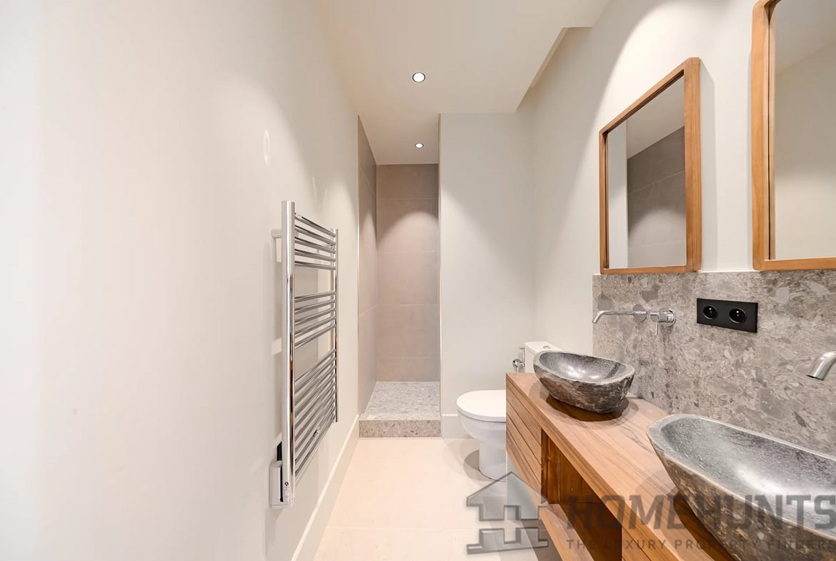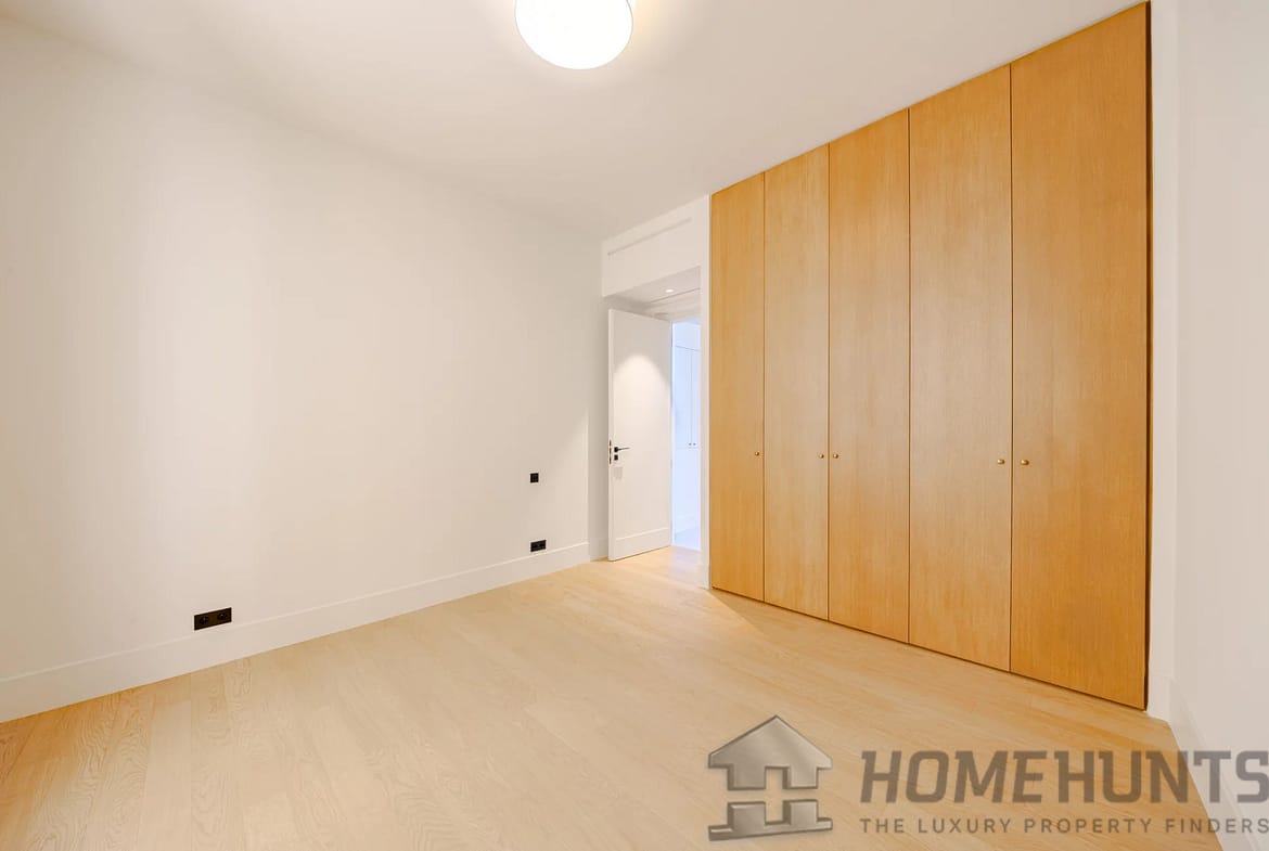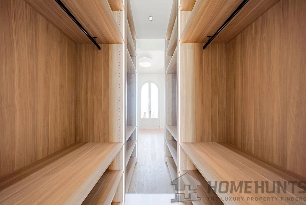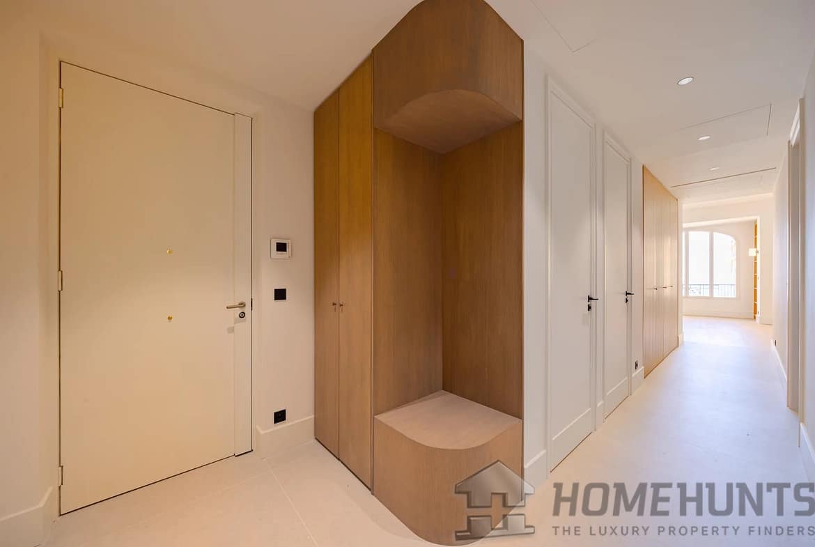 The apartment offers ample built-in storage throughout and high-quality finishes.