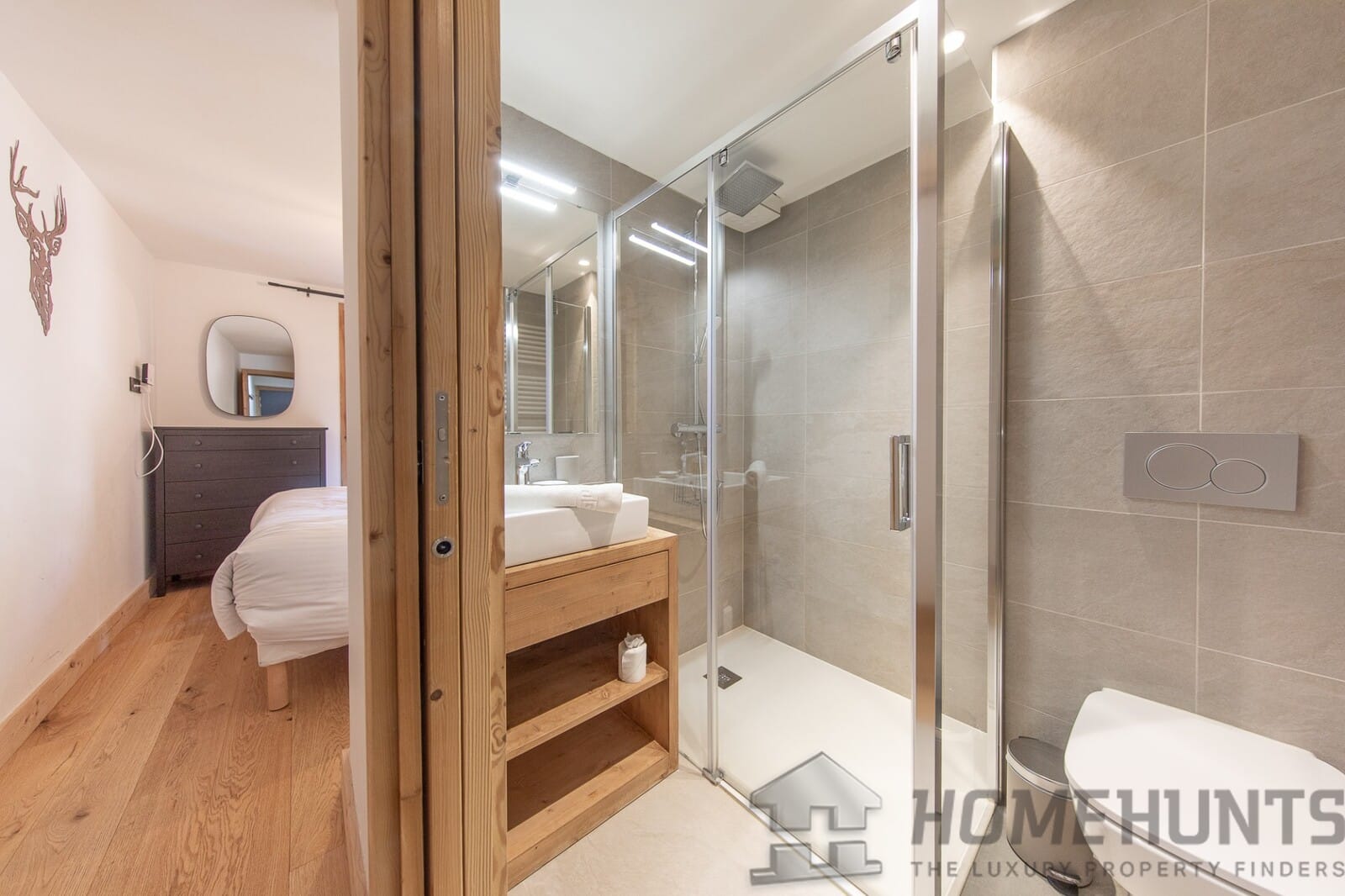 Spread over three levels, with a chalet feel, it comprises three bedrooms with private shower rooms. The fully-equipped kitchen opens onto a living room with large bay windows giving access to a terrace with uninterrupted views.
