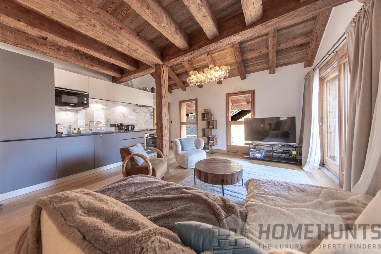 Combining authenticity and modernity, this luxury apartment was completely renovated in 2020 using top-of-the-range materials, highlighting its exposed beams and old wood frame.