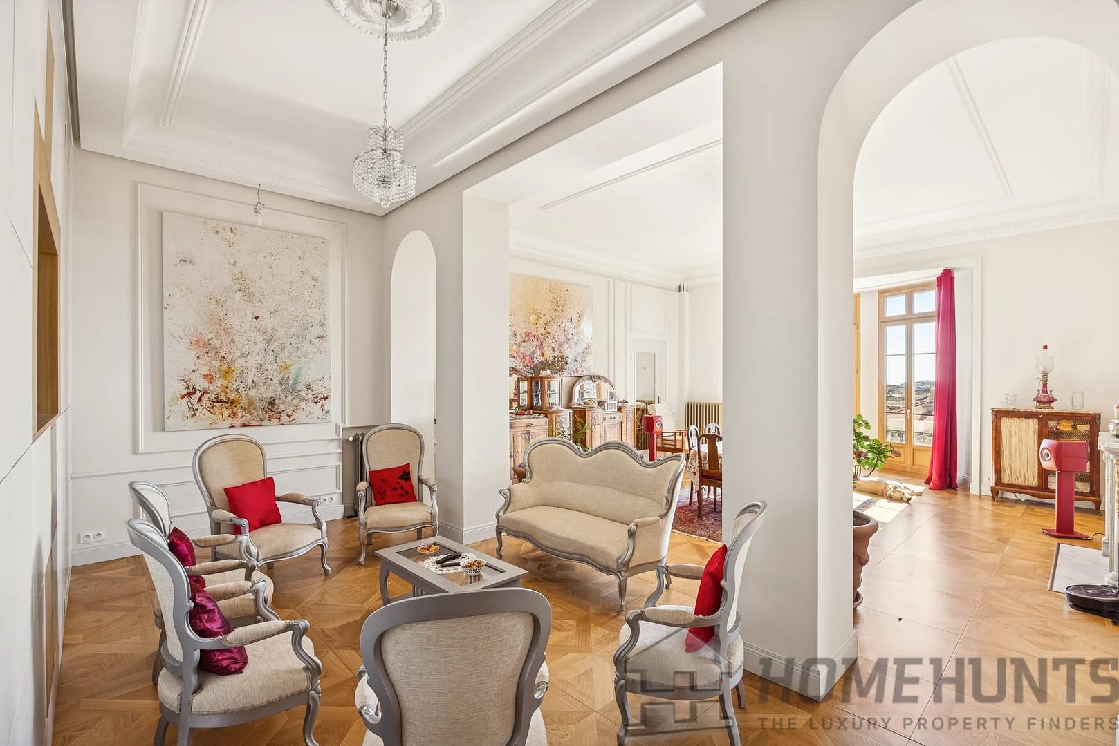 This exceptional 3 bedroom apartment of 253 m2 combines historical charm with modern comfort. It features a majestic entrance hall, a large bright living room, three bedrooms, two salons, an independent kitchen, a bathroom, a shower room, and a laundry room.