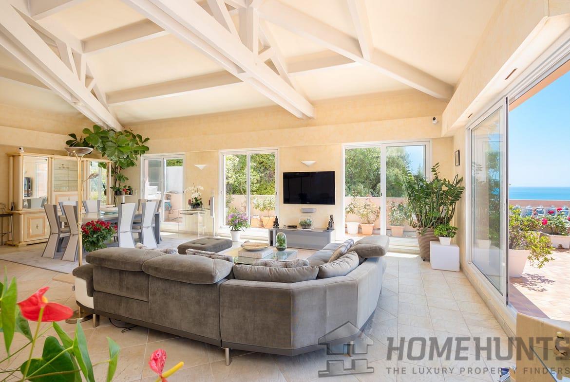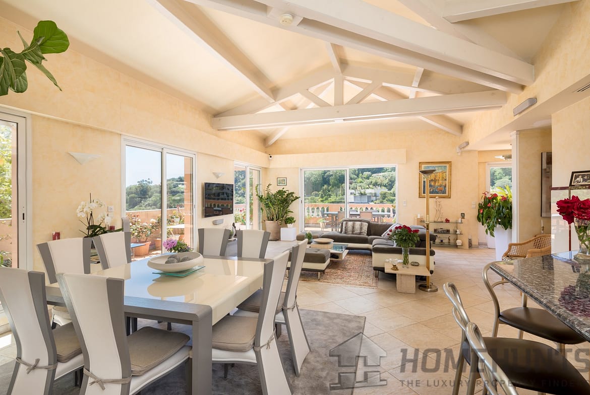 Located on the last floor of an excellently maintained residence, south/west facing and fully air-conditioned, superb roof top duplex apartment/villa of 174,13 m2 on two levels, served directly by a lift, offering a large circular terrace with a beautiful panoramic view of the sea, the city and the hills.