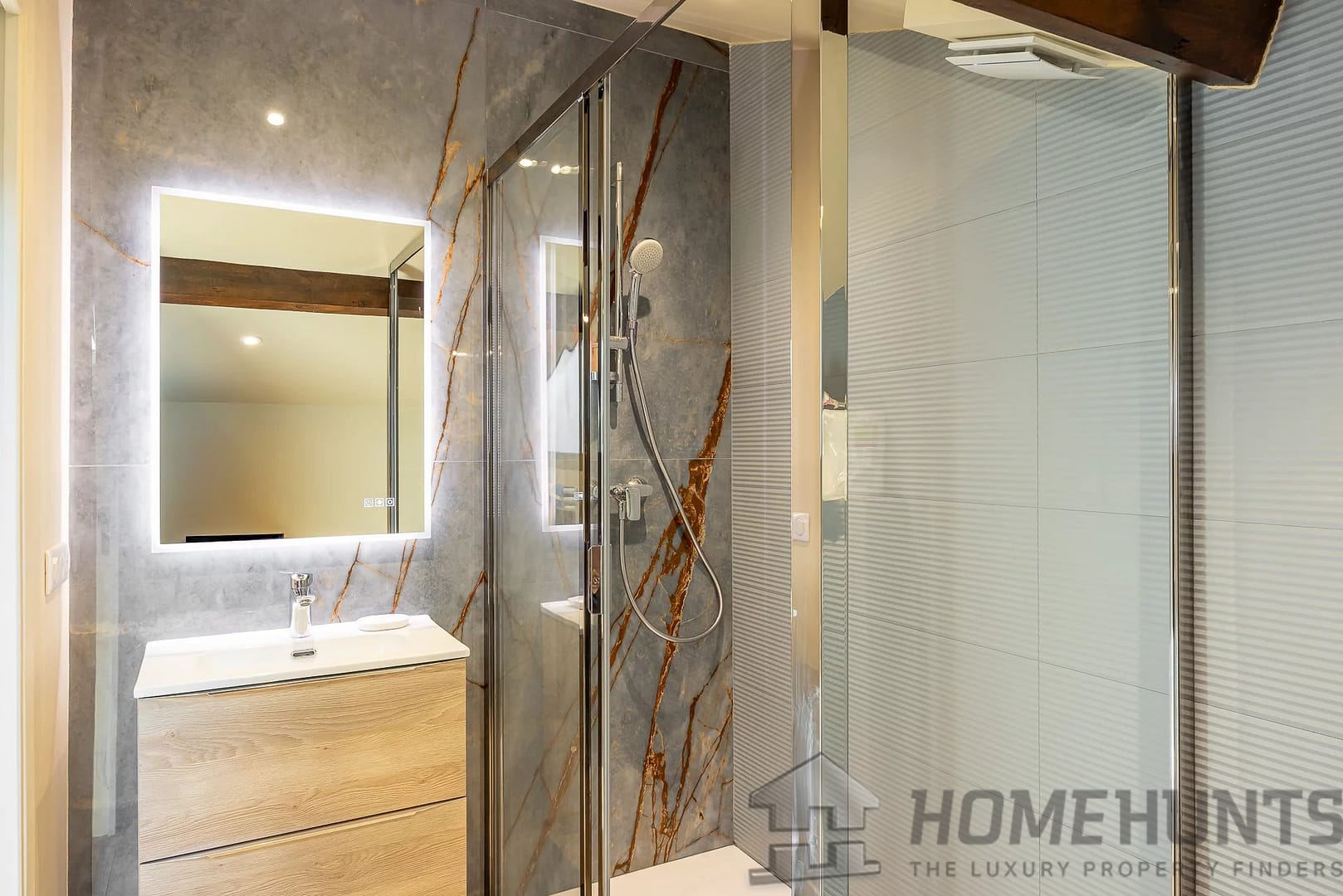 A private home cinema, designed for a unique immersive experience. Two large bedrooms, including a sumptuous master suite of 30.15 m2, with its own en-suite bathroom and WC, a second bathroom, and a guest WC.