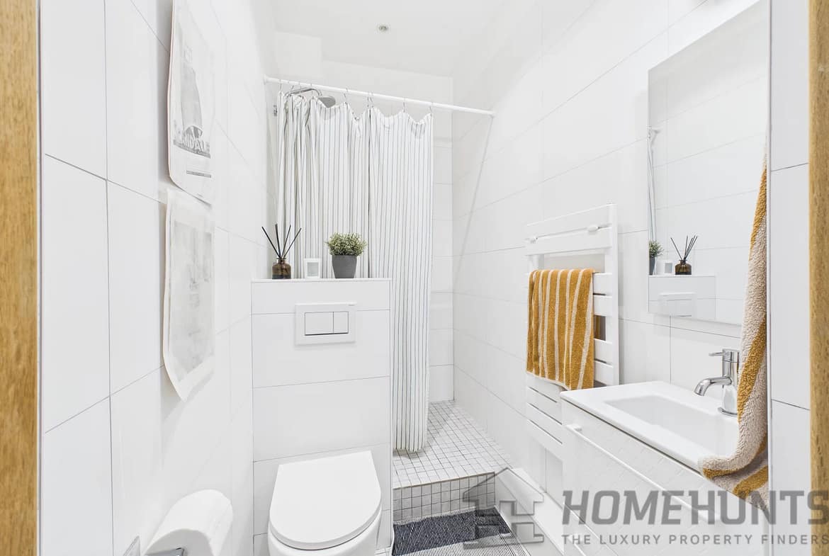 The apartment features three cosy bedrooms, two of which have their own private balconies. The living room offers the possibility to create a fourth bedroom. You will also find a modern shower room and a bathroom with heated towel rails.