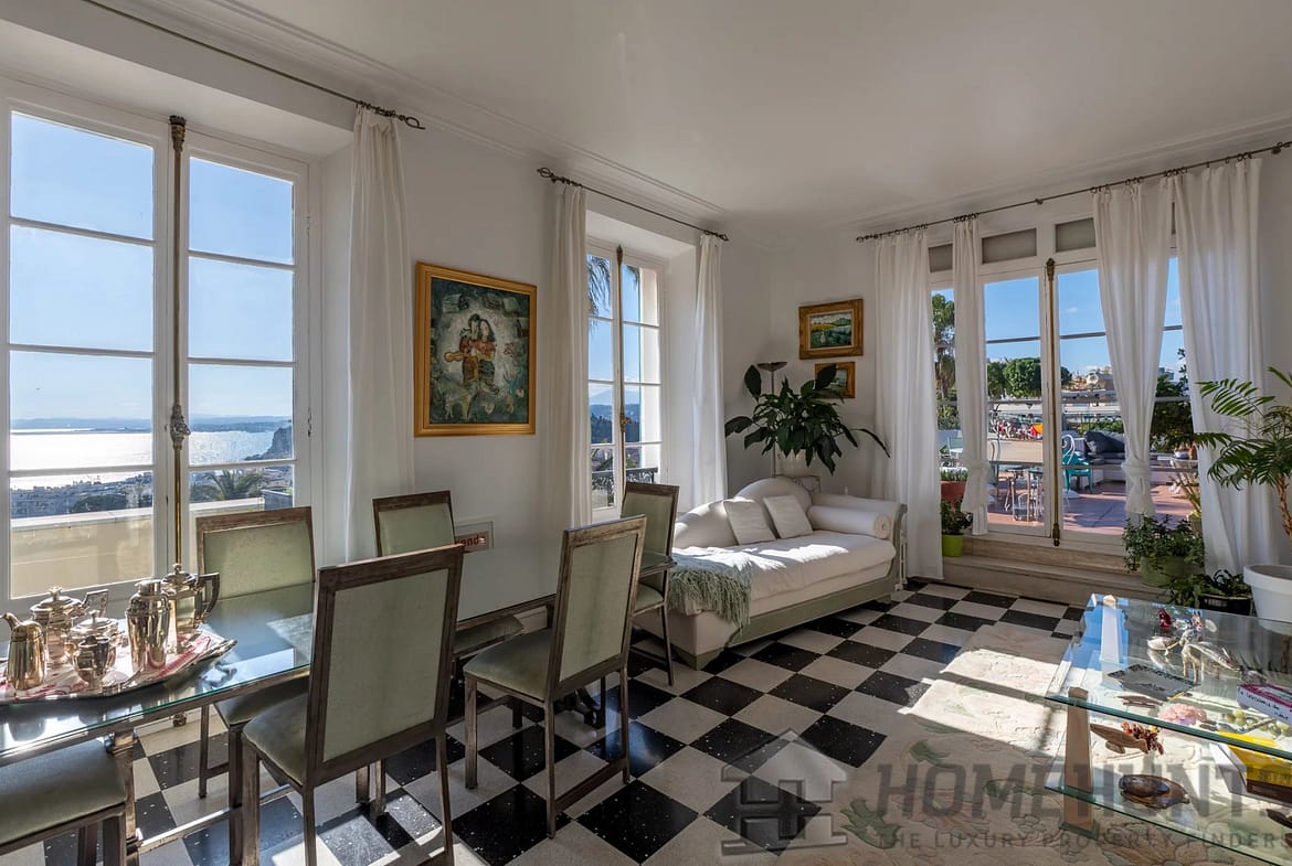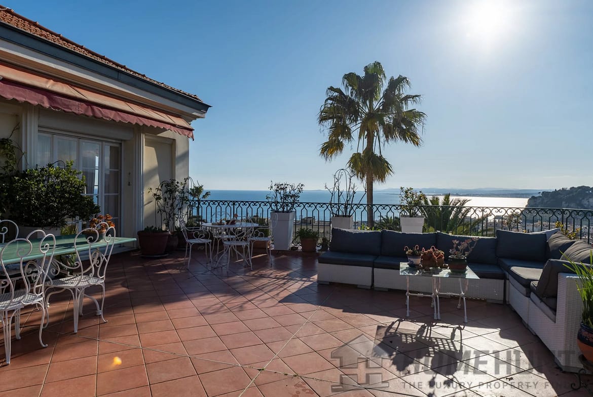 This unique property boasts two large terraces (88m2 and 16m2) with panoramic views over the Baie des Anges.