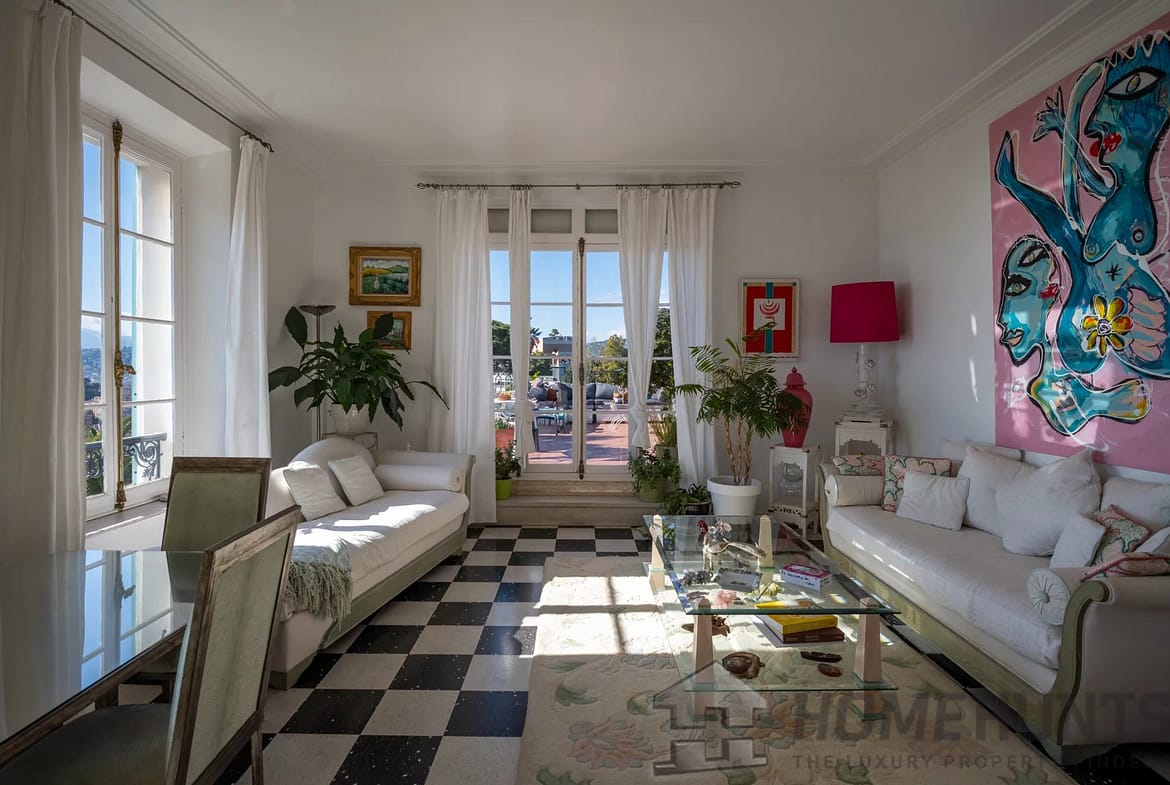 This handsome 128 m2 apartment on the top floor of a noble building dating from 1863, is located in the sought-after Mont Boron district of Nice, just a 10-minute walk from the sea and 300 meters from public transport.