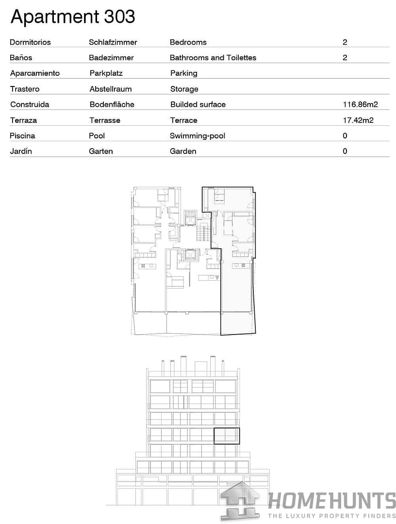 This stylish second-floor apartment has 2 bedrooms with impressive sea views, a high-quality designer kitchen, 2 bathrooms and plenty of storage room, as well as a spacious covered terrace.