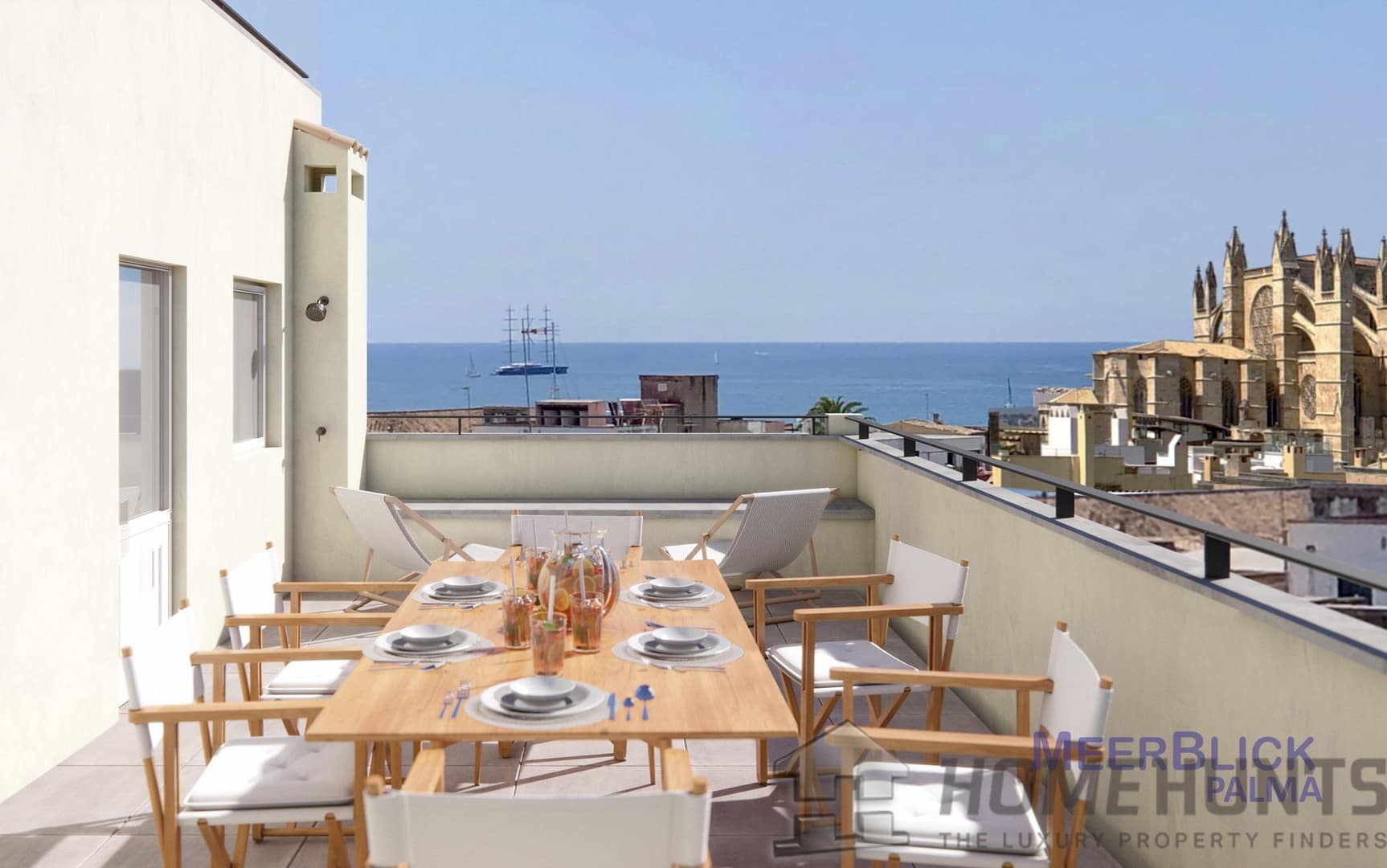 It’s interior offers an overall earthy, warm natural tones with carefully selected furniture. The open plan kitchen, dining and living room area with elevated roof ceiling offers a loft feeling and working with the brands such as De Sede, Voglaur, Joka, Hacker, Miele and Gaggenau ensure the maximum of quality and comfort. It has two ensuite bedrooms, guest bathroom, a fabulous roof terrace offering views of the Cathedral, Sea and Palma Old Town ideal for entertaining or pure relaxation.