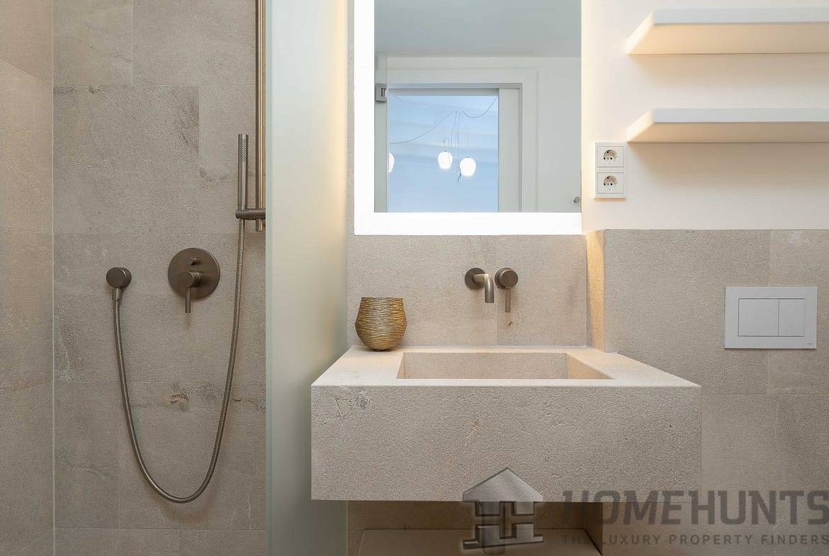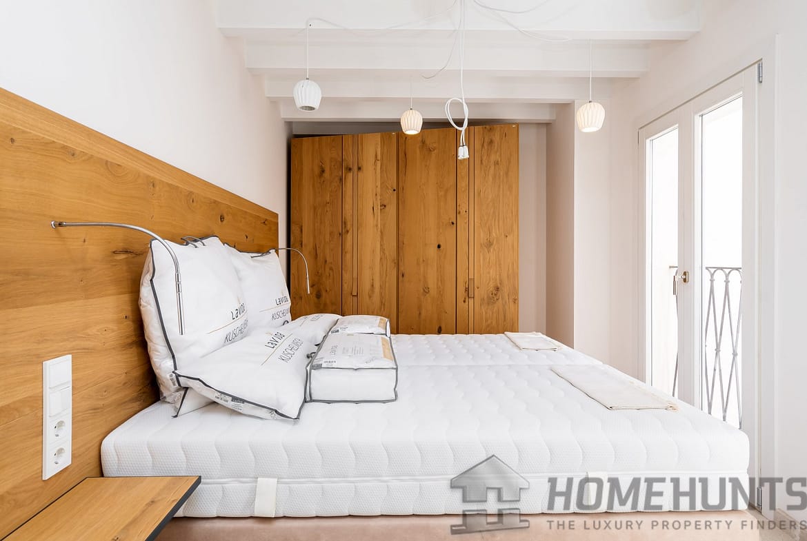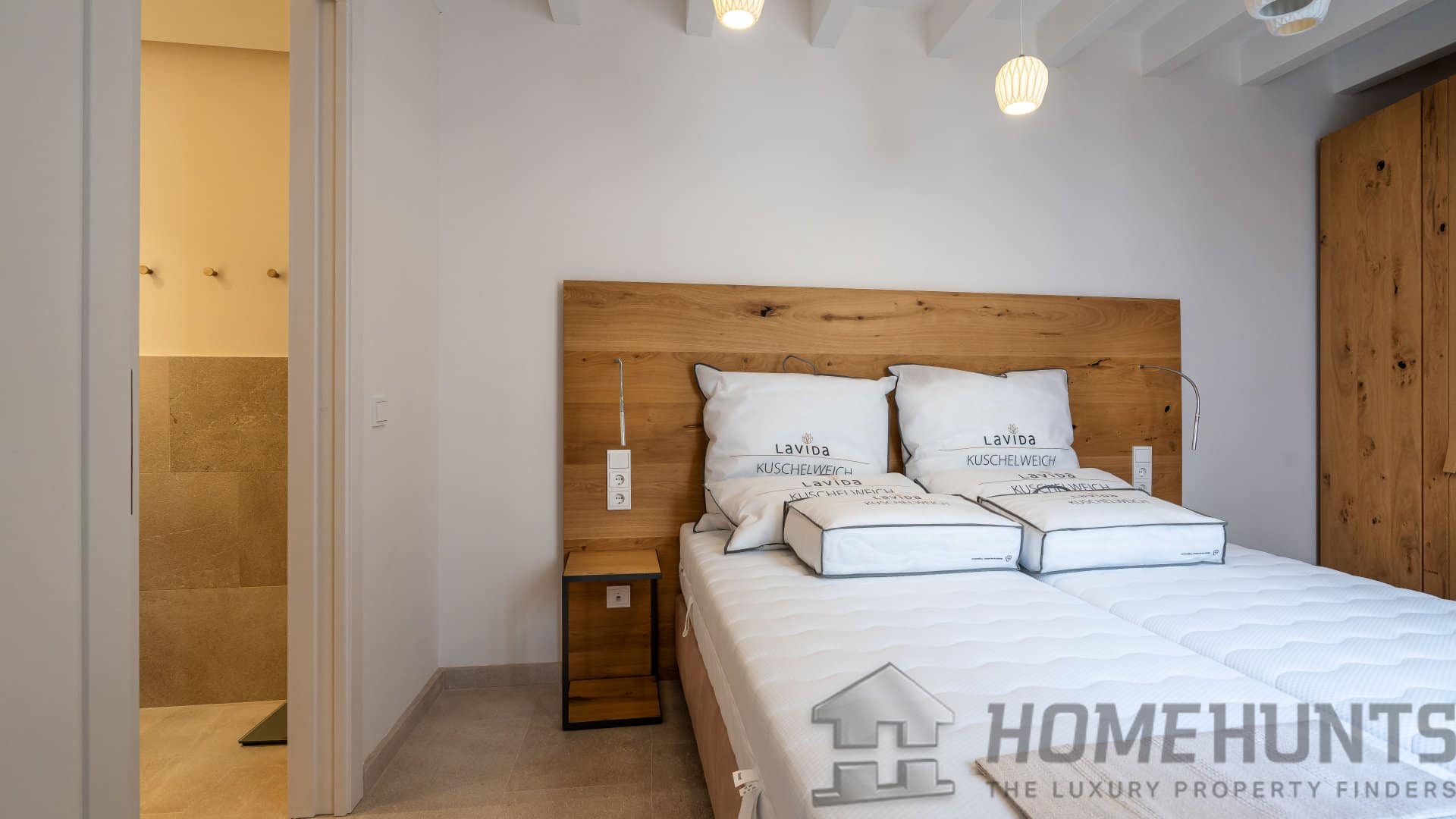 It’s interior offers an overall earthy, warm natural tones with carefully selected furniture. The open plan kitchen, dining and living room area with elevated roof ceiling offers a loft feeling and working with the brands such as De Sede, Voglaur, Joka, Häcker, Miele and Gaggenau ensure the maximum of quality and comfort. It has two ensuite bedrooms, guest bathroom and private patio.