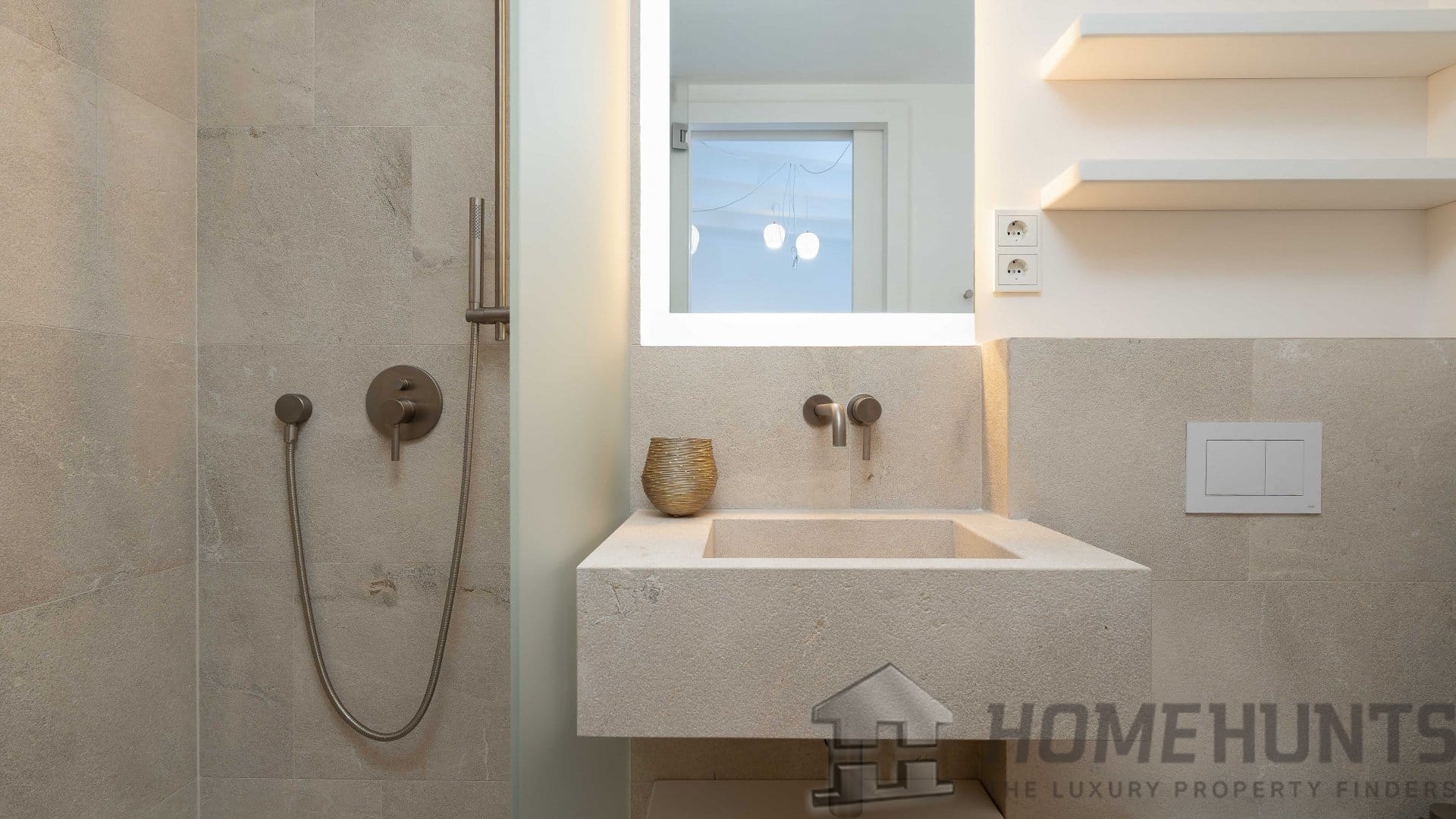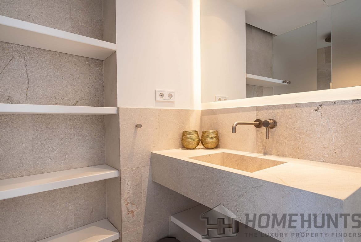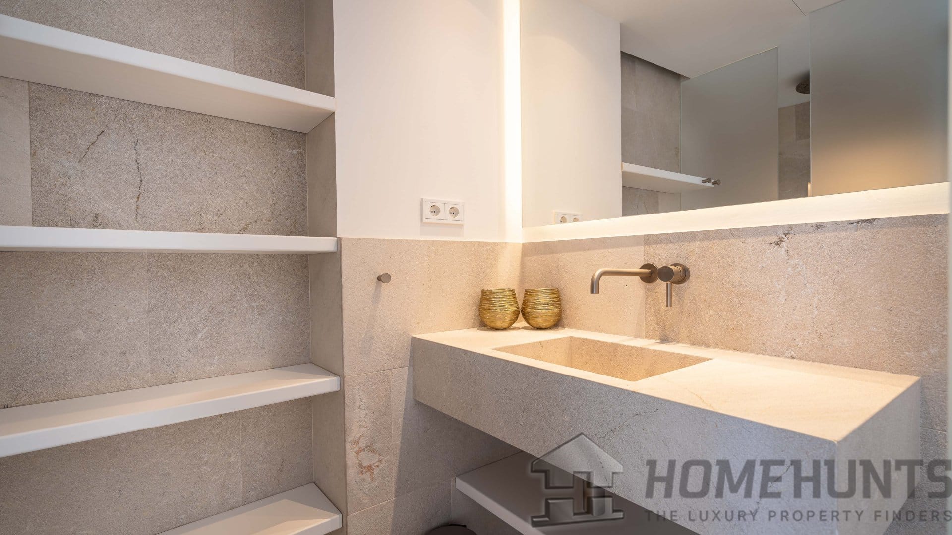 It’s interior offers an overall earthy, warm natural tones with carefully selected furniture. The open plan kitchen, dining and living room area with elevated roof ceiling offers a loft feeling and working with the brands such as De Sede, Voglaur, Joka, Häcker, Miele and Gaggenau ensure the maximum of quality and comfort. It has two ensuite bedrooms, guest bathroom and private patio.