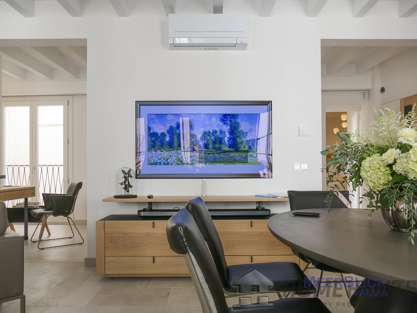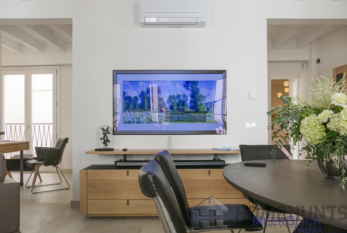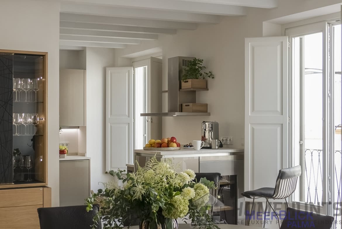 “Sea View Palma Residence” is located in one of the most emblematic streets in Palma just off Plaza Santa Eulalia. This first floor apartment stands out for its modern clear lines as well as bright rooms due to its floor to ceiling windows.