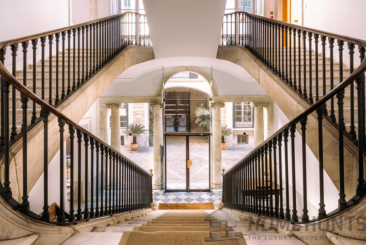 This residential building of historical importance is truly a gem and rare to see. Its imposing entrance and magnificent stairwell is a demonstration of its grandeur which increases with the communal terrace and garden area with some spectacular preserved stone elements. The third floor property offers 3 bedrooms, 3 bathrooms, a fully fitted kitchen, laundry area and double level living room. It comes complete with two garage parking spaces and a storage room.