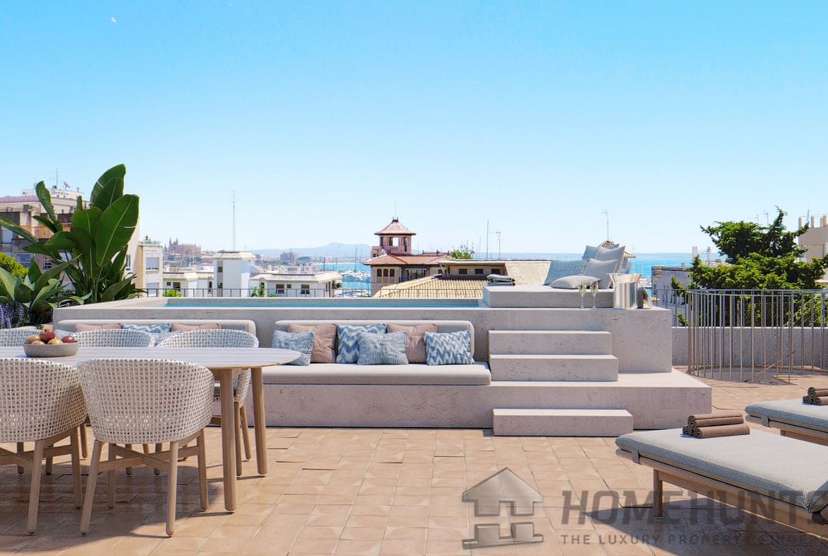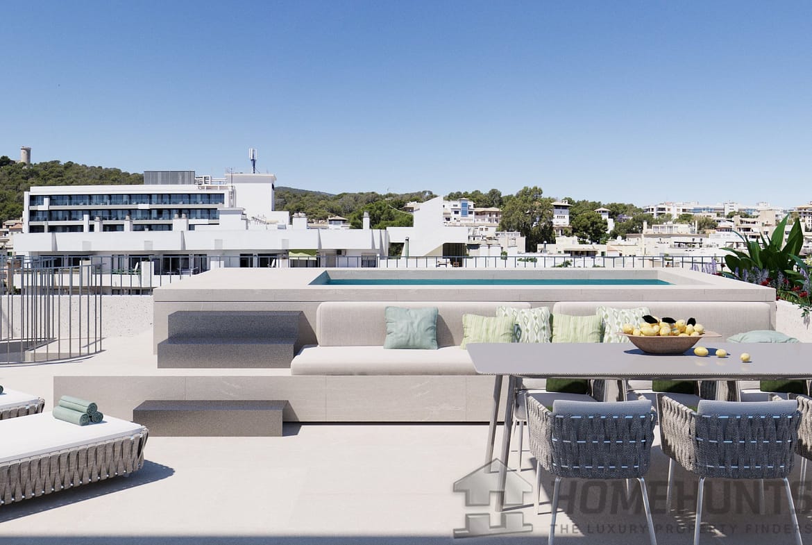 This penthouse has a private rooftop terrace with a pool and lounge area with lovely planters with green elements all around and a total of 74 m2 indoor living space, a 14.8 m2 of covered terrace on level and 73 m2 of exterior which includes two bedrooms and two bathrooms and a stunning open plan kitchen, dining and lounge area.
